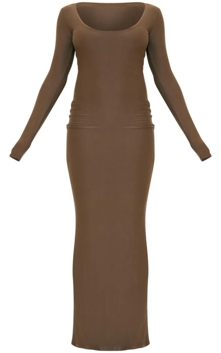 Take the stress out of everyday styling with this khaki soft touch scoop neck long sleeve midaxi dress. Brough to you in a khaki hue soft touch material with a scoop neck design, long sleeves and a midaxi fit, how can you resist? Perfect for dressing up or down to suit any occasion, this midaxi dress is sure to be a staple in your new season wardrobe. Just add sneakers and your go-to accessories for a fool-proof finish.