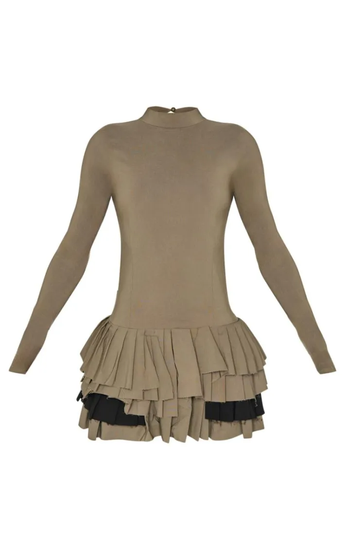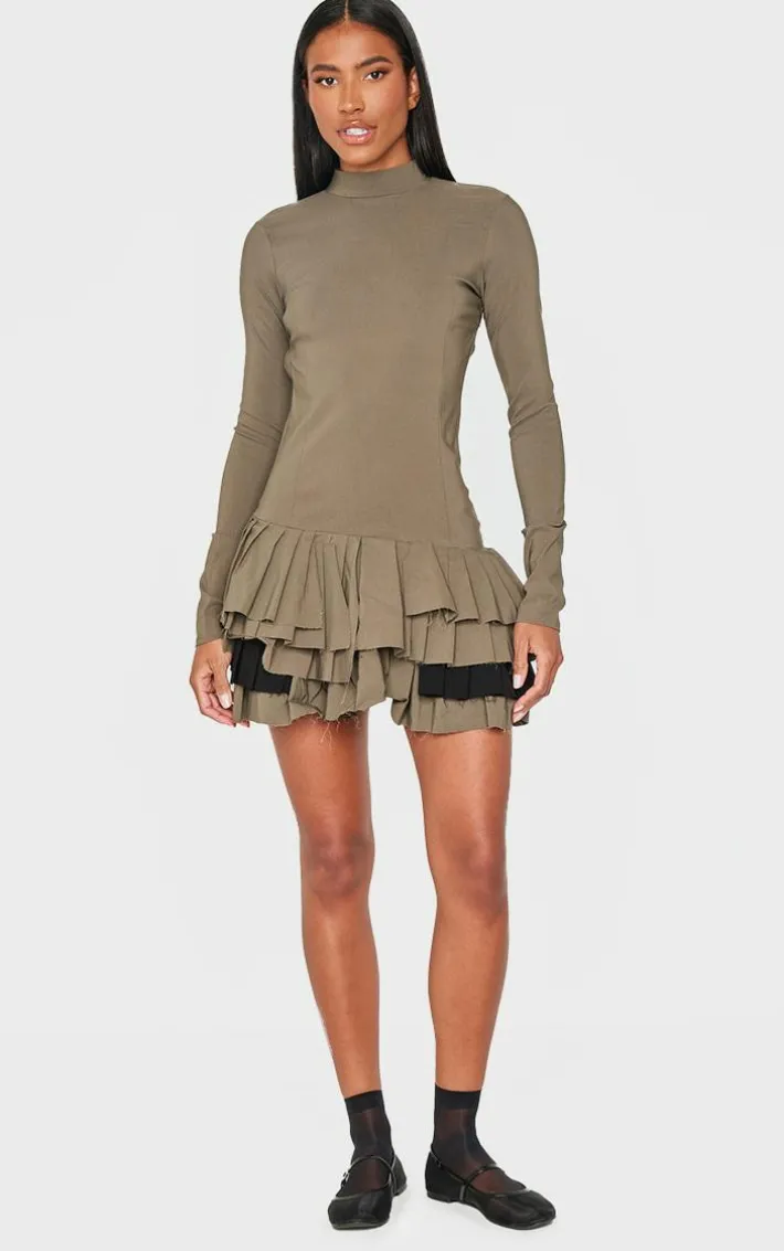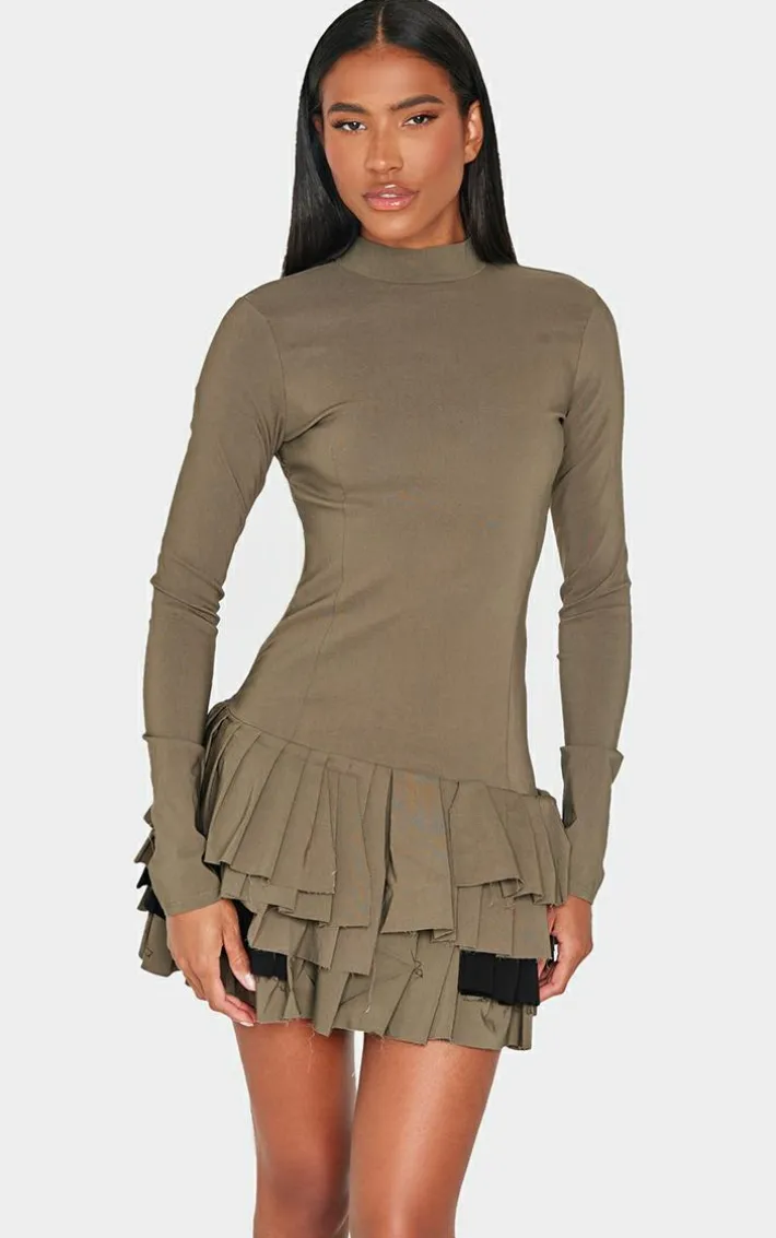 Add this khaki stretch woven extreme pleated long sleeve shift dress to your new season faves. Brought to you in an unreal khaki shade, with a stretch woven material for ultimate comfort, and an extreme pleated design, how can you resist? Pair with some statement earrings and a pair of heels to really elevate the look.