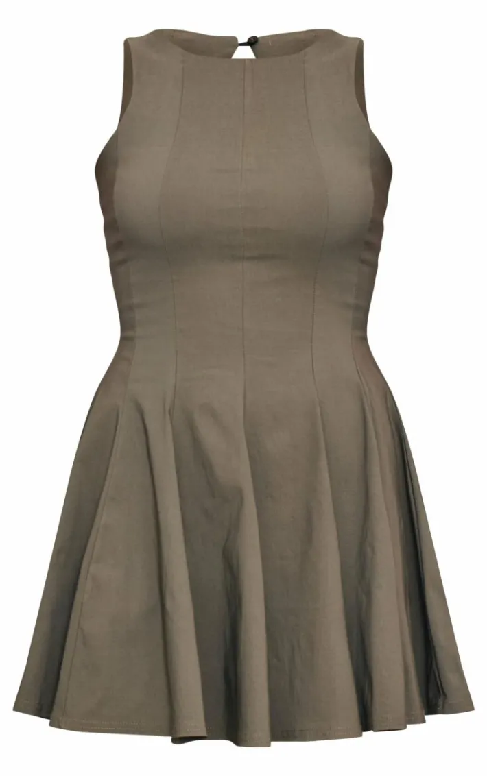 Take the stress out of weekend styling with this khaki stretch woven racer pleated shift dress. Brought to you in a khaki stretch woven material with a racer neckline and a pleated design, what’s not to love? Style this shift dress with chunky boots and gold accessories for a look that is sure to make heads turn wherever you go.