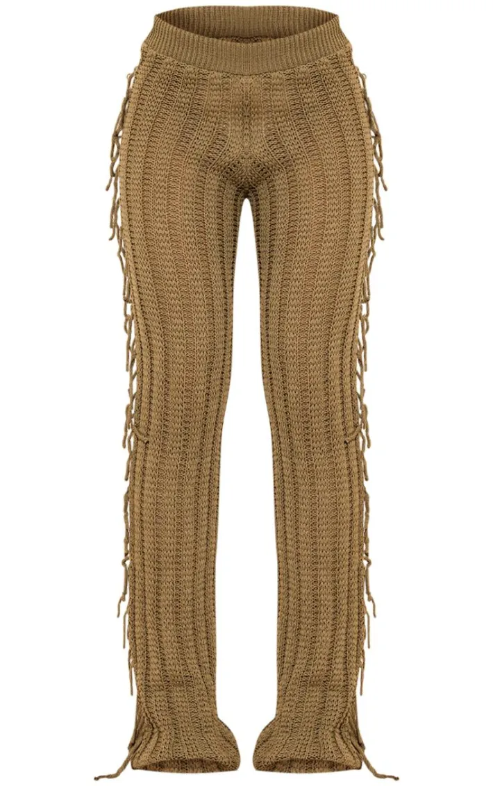 Take your look to new heights with these khaki tassel crochet wide leg pants. Brought to you in a khaki material with a crochet design and a tassel detail, what more could you want? These wide leg pants are perfect for those nights out. Team with the matching crop top and your fave accessories to finish off the look.
