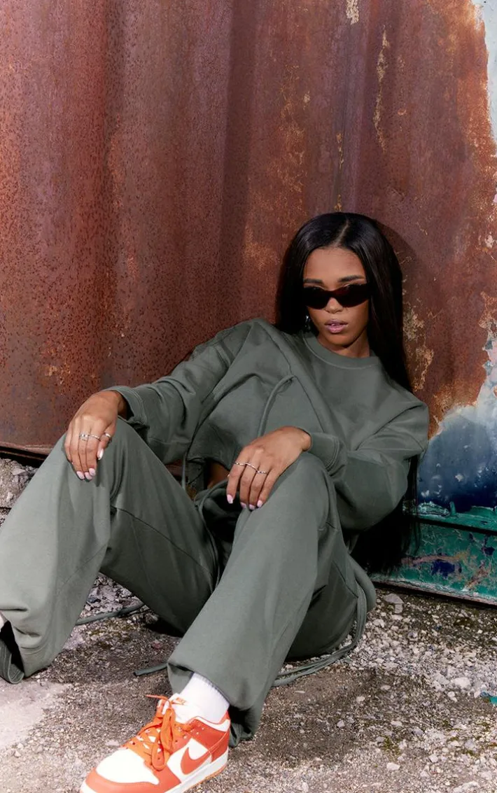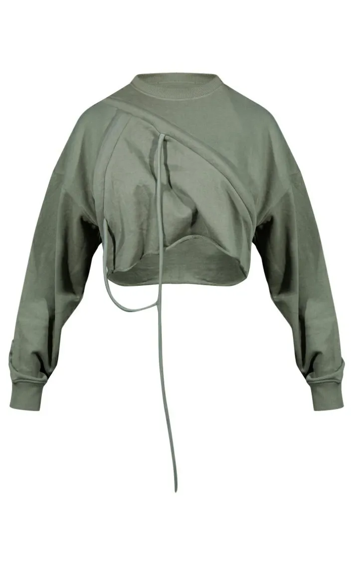 Take your off-duty look to a whole new level with this khaki tube strap detail cropped Sweatshirt. Brought to you in a khaki hue material with strap detailing and a cropped fit, what more could you ask for? This cropped Sweatshirt is sure to add an edge to any look. Style with the matching sweatpants, accessories and sneakers for a look we just can’t get enough of.