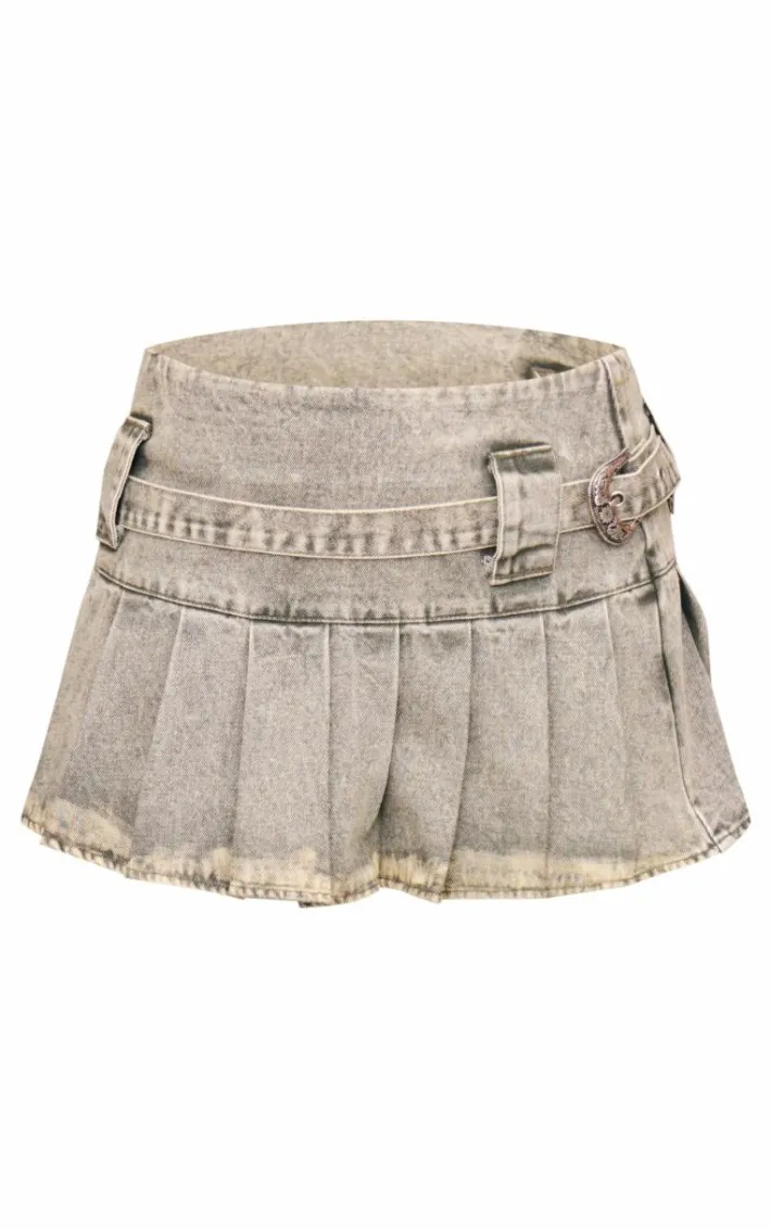 You’ll be turning heads for the right reasons in this khaki washed twill belt detail pleated mini skirt. This washed khaki shade is unmatched, paired with the dreamy belt detail, pleated design and twill material, we can’t stop thinking about this. For a fierce look, style with a cowl neck crop top, knee length boots and gold hoop earrings.