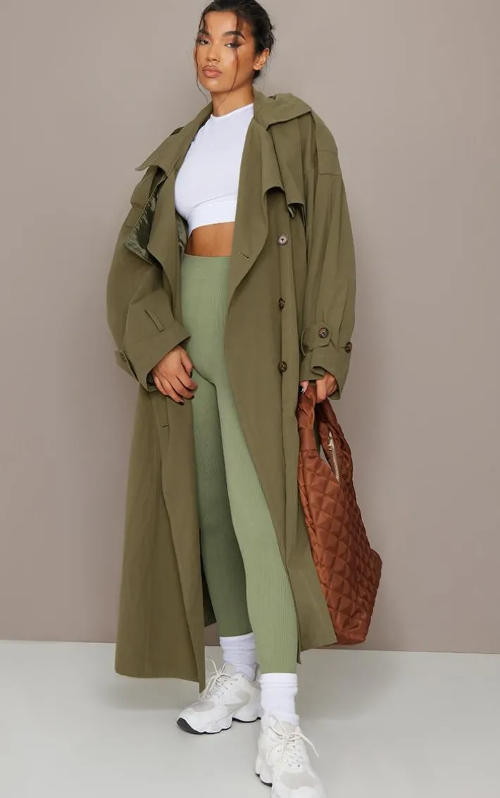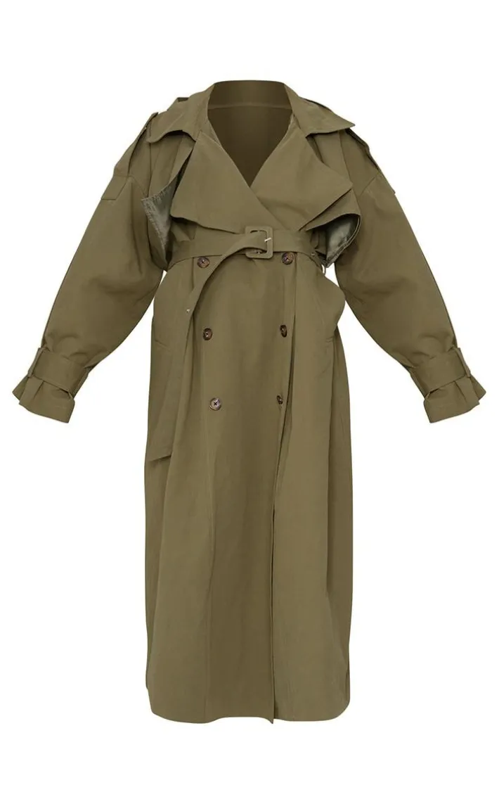 This trench coat is sure to elevate any outfit of the day. Featuring a khaki premium woven material with a hood and an oversized fit, we’re obsessed. Wear over your existing wardrobe pieces for a chic finish to any look.