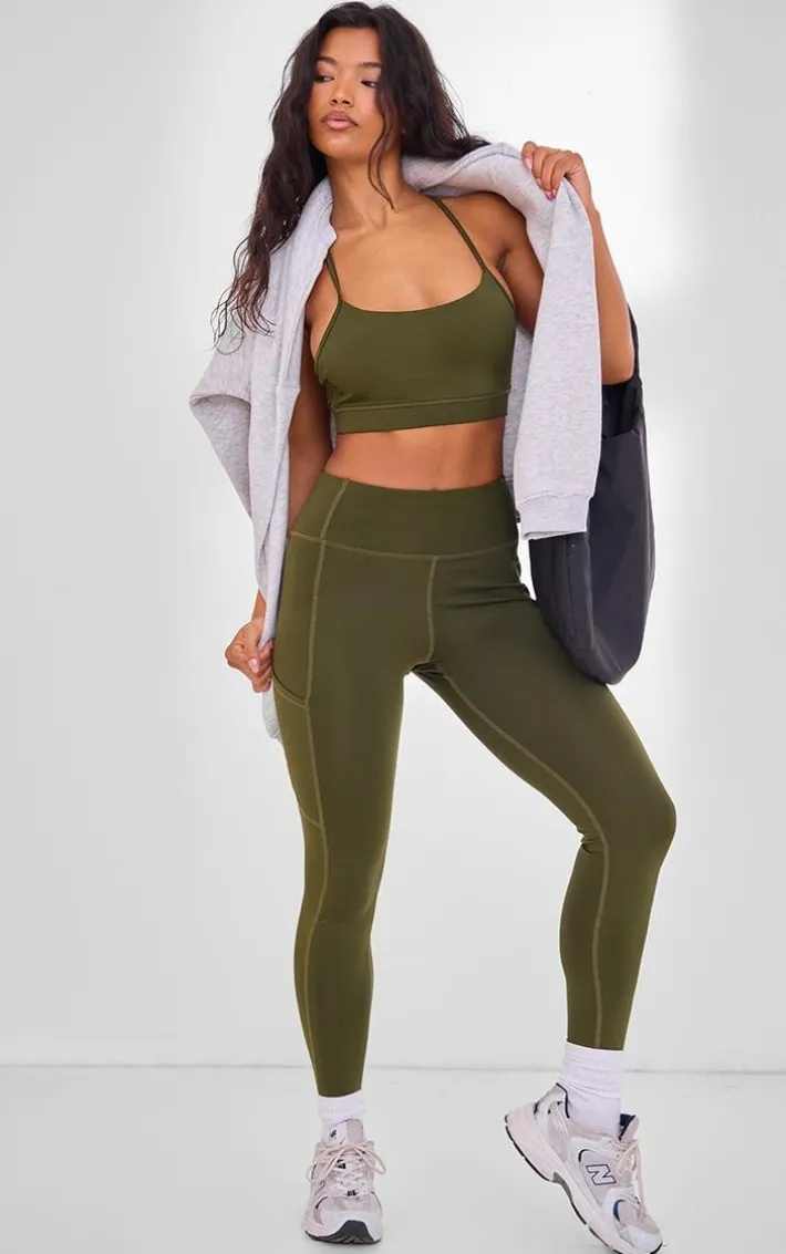 Hit refresh on your activewear collection with this khaki Y back seamless sports bra, we’re obsessed. With a khaki hue material, a Y back design and a seamless style, you’ll be reaching for this sports bra for your next gym session and beyond. Style it with the matching leggings, sneakers and a shoulder bag for a look that is totally on trend.