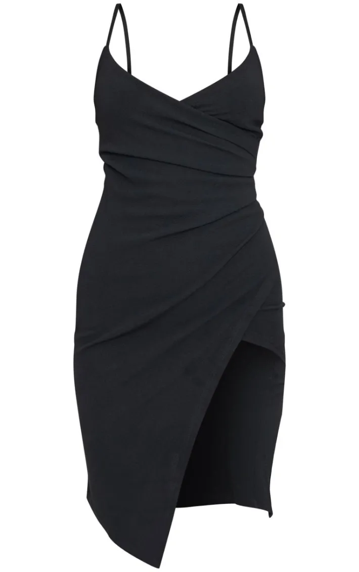 Channel slick and sophisticated style in this wrap front midi dress. In luxe crepe fabric and featuring curve skimming shape, just add some killer heels for an effortlessly sexy party look.