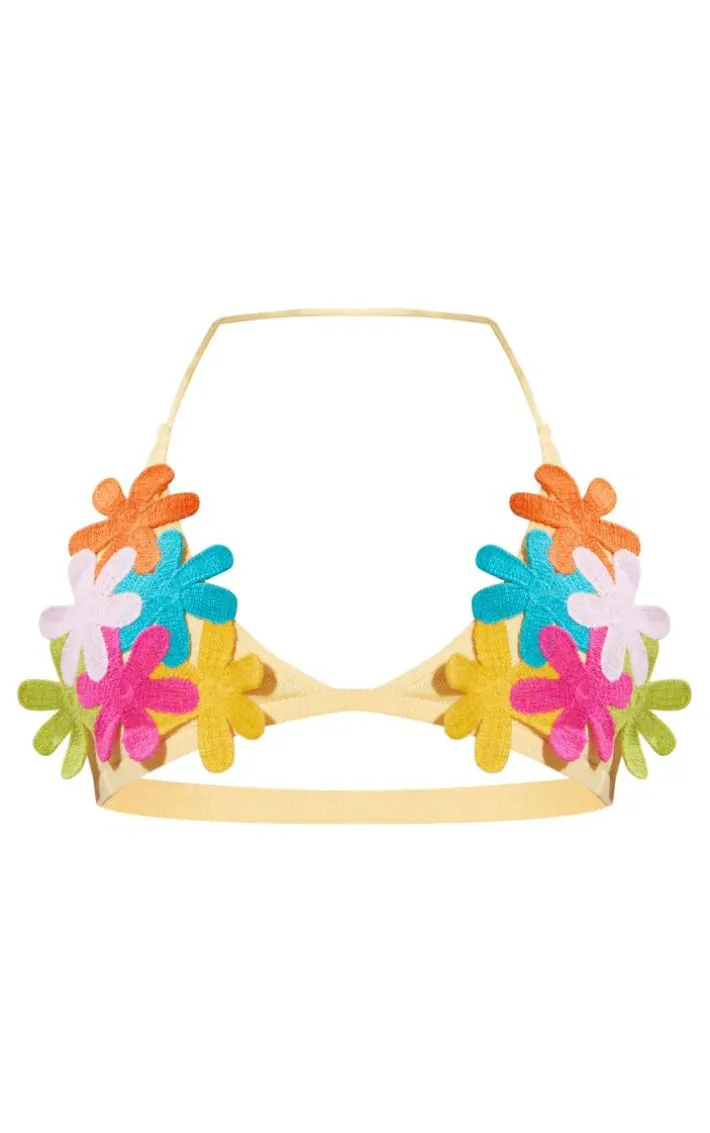 Turn heads for all the right reasons with this lemon flower embroidered triangle knit top. Brought to you in a lemon knit material with embroidered flower detail and a triangle design, how could you say no? This top is sure to make everyone stop and stare, what’s not to love about that ? Shop the look and nail that summer vibe with a pink mini skirt and chunky sandals. We’re obsessed.