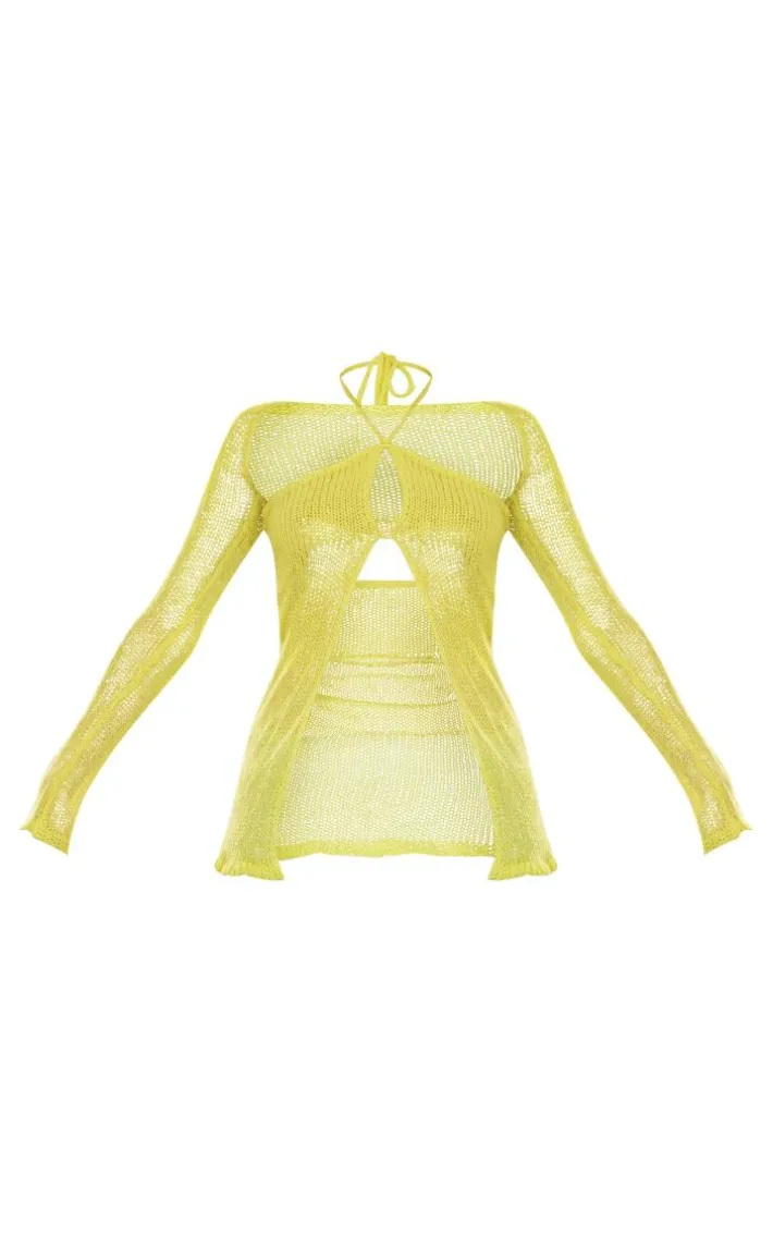 Brighten up your new season wardrobe with this lemon open knit open front top and sleeves. Brought to you in a dreamy lemon hue open knit material with an open front design and matching long sleeves, you really can’t go wrong. This open knit top is sure to add all the drama to your outfit. Style with jeans and bold hue heels for a weekend-worthy look like no other, perfect for your next night outand beyond.