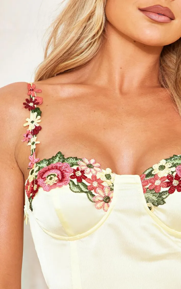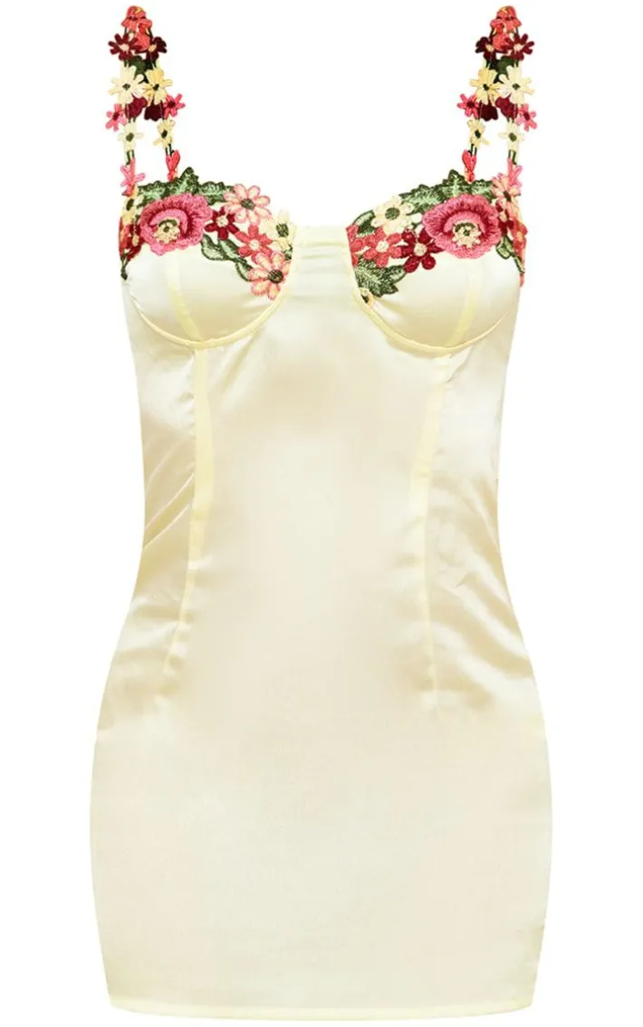 Got an occasion planned? This lemon satin flower trim detail strappy shift dress is sure to make you stand out from the crowd. Made from a dreamy lemon hue satin feel material and featuring flower trim detailing for that extra touch of glam, what more could you want? With adjustable thing straps and a figure-flattering shift style, you really can’t go wrong with this dress. Just add heels and statement accessories to complete the look we’re loving.