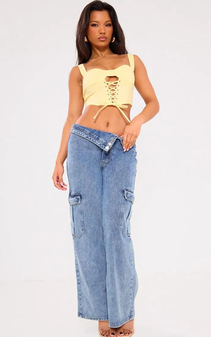 Add some statement hues to your weekend wardrobe with this lemon stretch woven boned lace up crop top. Brought to you in a lemon stretch woven material with a boned design, you are sure to be showing off your shape in all the right places. Its lace up fastening is sure to have you tapping into your feminine side. Team this crop top with a pair of wide leg jeans and a pair of heels.
