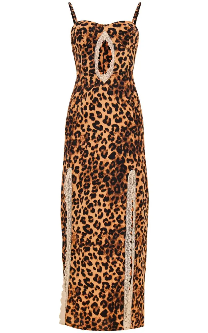 Your wardrobe is calling out for this leopard print cut out lace detail maxi dress for your new season look. With a leopard print design and a cut out lace detail how could you resist? Team with a your fave accessories and clear heels for a weekend-worthy finish. It’s official, we’re obsessed.