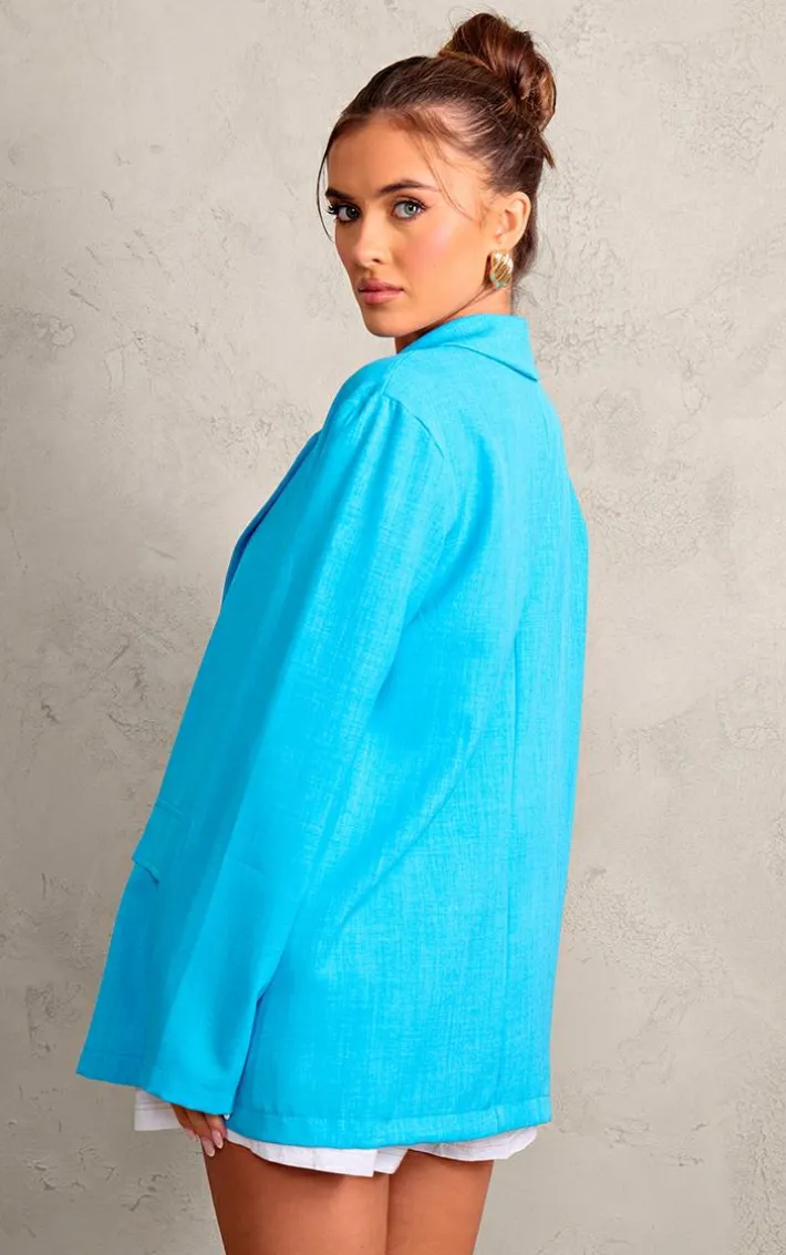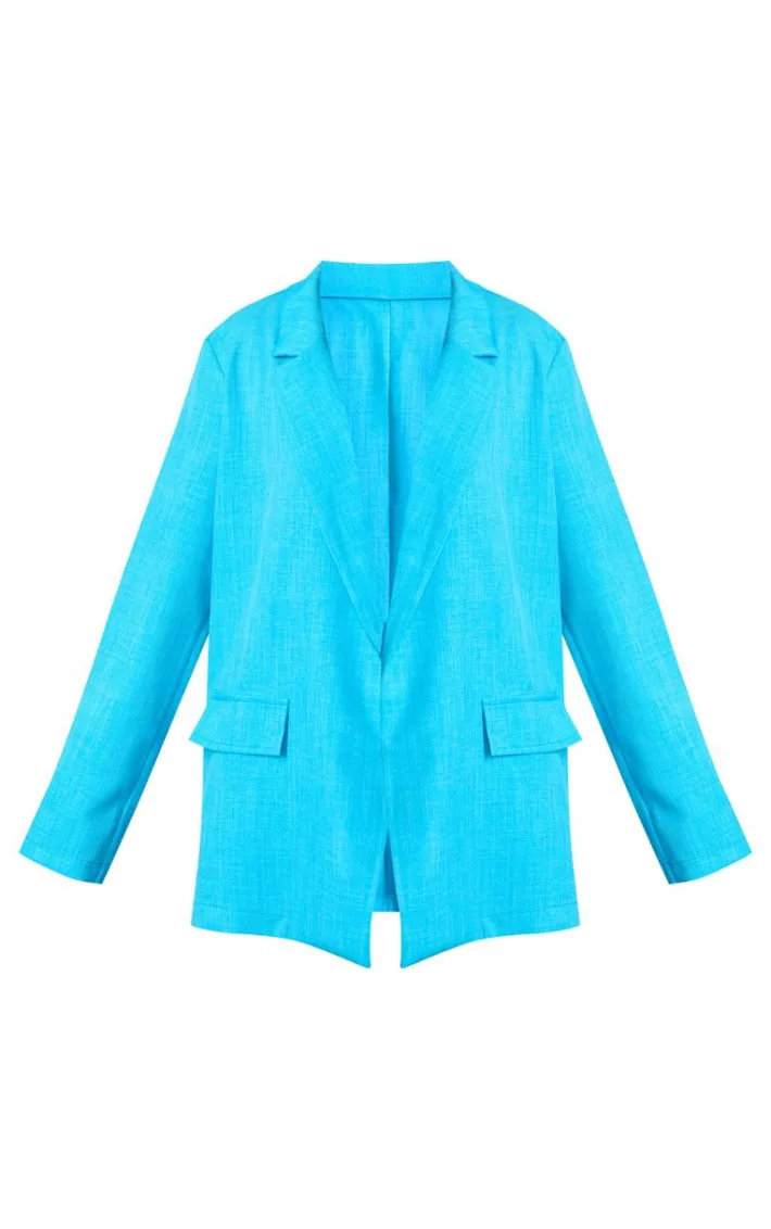 Go for all the bold hues this season with this light blue linen look minimal blazer, it is perfect for dressing up or down. Made using a light blue linen look material with a minimal design and a relaxed fit, you’ll be adding this blazer straight to your basket. Pair with shorts, a bandeau top and some sandals for a look that is perfect for those warm weather days.
