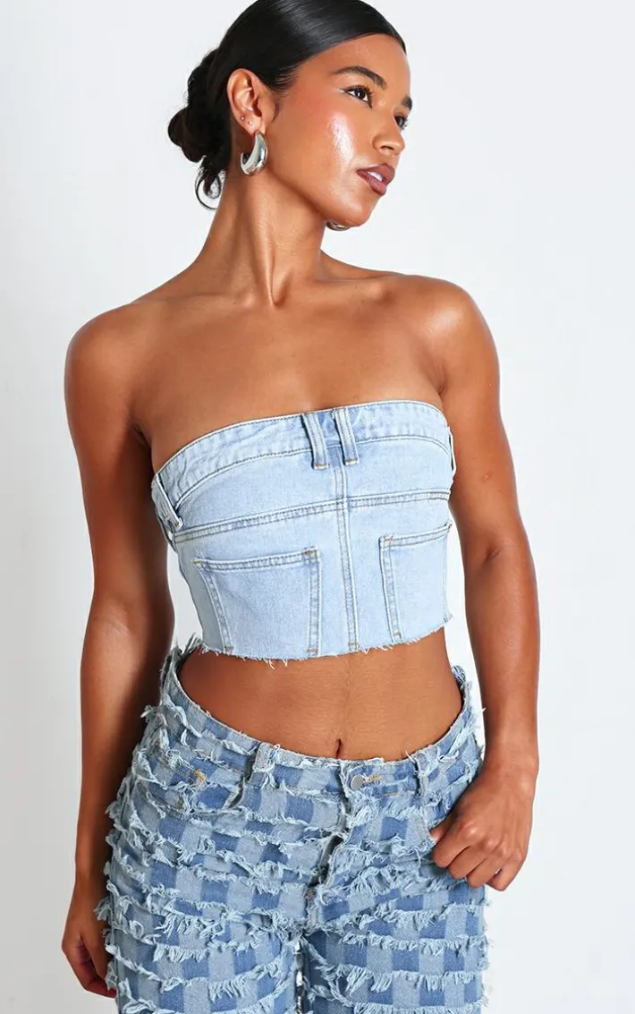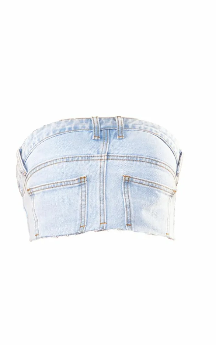 Make a statement this season with this light blue wash jean detail cropped bandeau denim top. This top is made from a light blue hue with jean detailing, this top is a must have for your new season wardrobe. With a cropped length, this versatile top can either be dress up or down. Style with some of your staple jeans and a pair of sunglasses to finish off the look that will get you noticed.