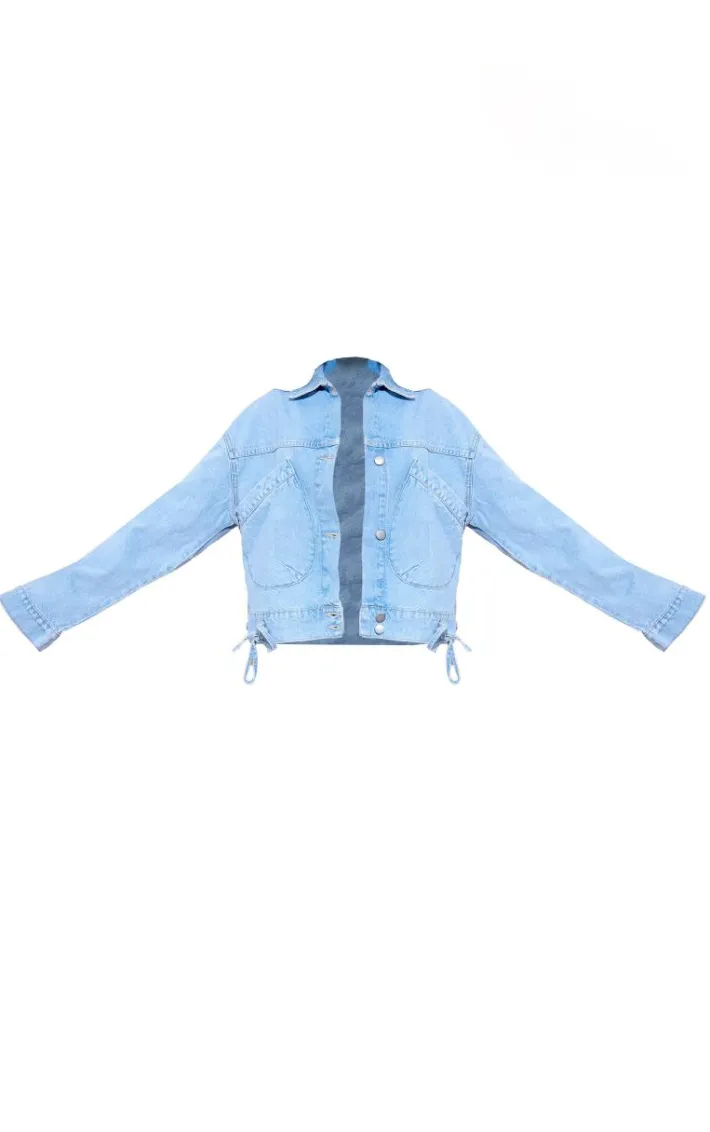 Make sure your denim look stays on point in this light blue wash lace up bow detail cropped denim jacket. Brought to you in a light blue wash denim material with a lace up design, bow detailing and a cropped fit, how can you resist? Pair this denim jacket with the matching hot Pants, a tee, sneakers and just add accessories for a look that is sure to make heads turn.