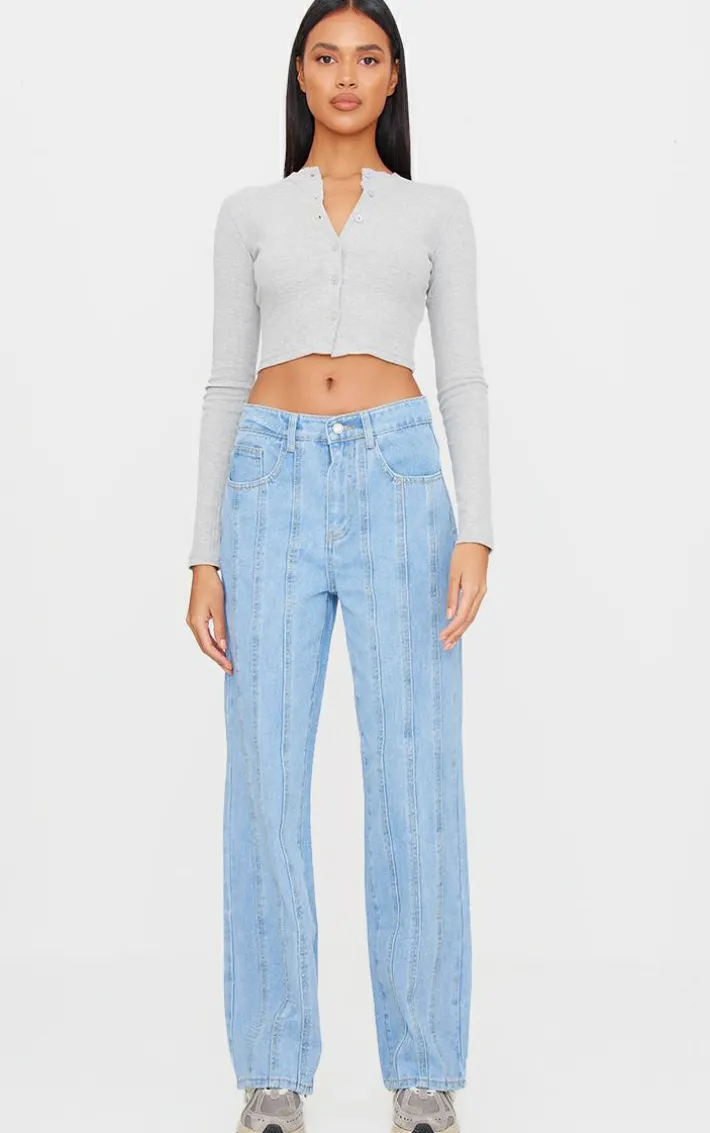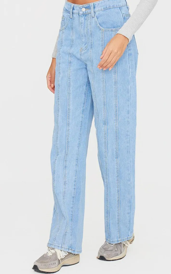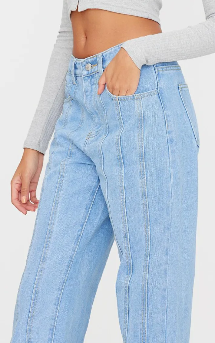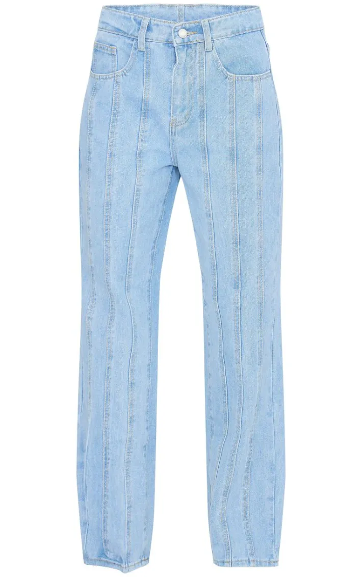 Take your off-duty look to new heights with these light blue wash seam detail straight leg jeans. Brought to you in a light blue wash material with a seam detail and a straight leg fit, we are obsessed. Team these jeans with a crop top and a pair of jeans for a look everyone is obsessing over.