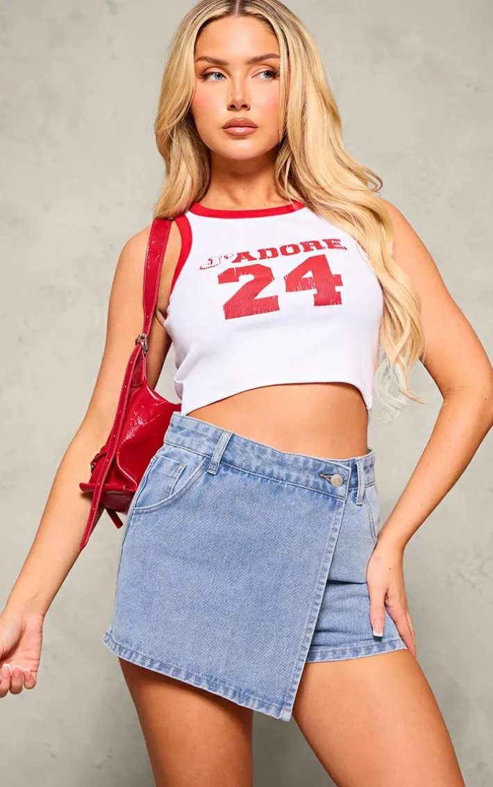 Make sure your new season look stays on point in this light blue wrap front denim mini skort. Brought to you in a light blue denim material with a wrap front design, what more could you want? Style this mini skort with a crop top and sneakers for an effortless everyday look that won’t go unnoticed.