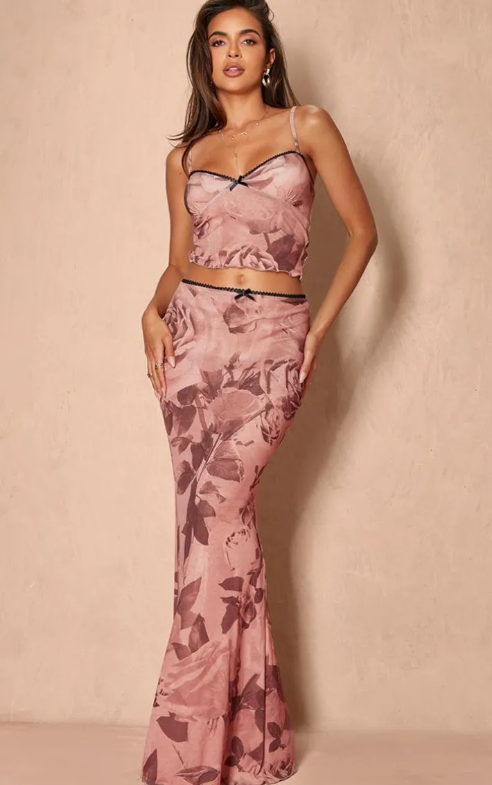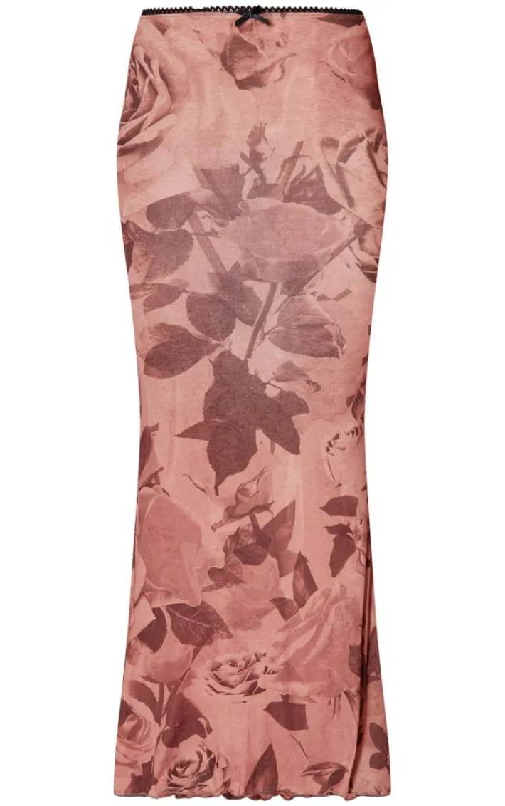Got a special occasion coming up ? Then this light brown floral print onion skin lettuce hem low rise maxi skirt is sure to solve all your styling dilemmas. It features a light brown onion skin material with a floral print and a low rise design, you’re sure to be showing off your confident side in this maxi skirt. Style this floral print skirt with the matching top, heels and your go to accessories for a look everyone will love.
