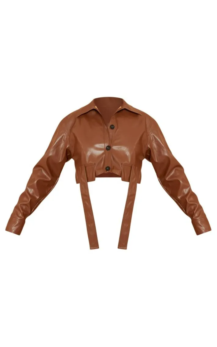 We are all about the faux leather feels right now and this light chocolate faux leather cropped utility pocket button detail shirt is sure to be a staple in your new season wardrobe. Brought to you in a light chocolate hue faux leather material with acropped fit, a button down front and an on-trend utility style, how can you resist? Wear this faux leather shirt with a flattering maxi skirt and heels for an effortlessly chic weekend look.
