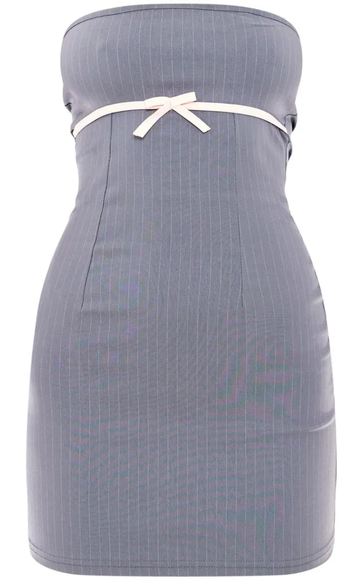 Dare to stand out from the crowd in this dreamy light grey pin stripe bow bandeau bodycon dress. With a light grey pink stripe material, with a bandeau design and bow detail, you’re sure to be earning all the compliments in this bodycon dress. Just add some flat shoes accessories for a look that is totally on trend.