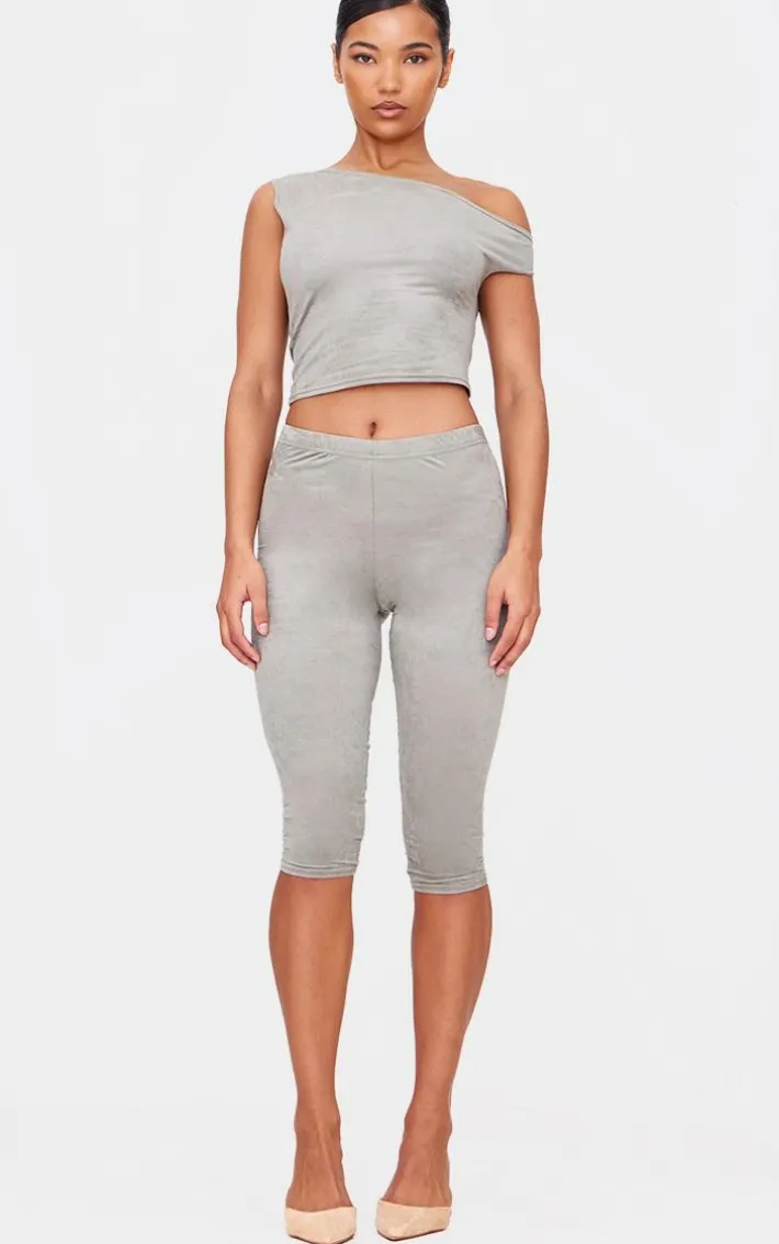 What’s not to love about this light khaki faux suede asymmetric crop top? With its must have light khaki hue, luxe faux suede material and flattering asymmetric design, you’ll be stepping out in style this season. Style with the matching capri pants and heels for a look that won’t go unnoticed.