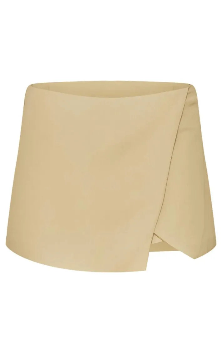 Look all kinds of chic in this light khaki tailored woven wrap front skort. Brought to you in a light khaki hue woven material with a wrap front design, what more could you need? Style this tailored skort with a crop top and court heels for a look that is sure to make heads turn for all the right reasons.