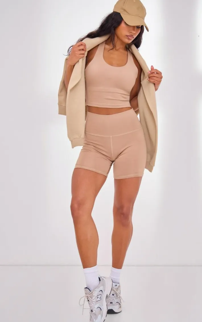 Bring all the neutral hues to your workout wardrobe with this light mocha padded seamless top. Brought to you in a light mocha material with a padded design and a seamless fit, what more could you want? Team this light mocha top with the matching shorts, sneakers and your everyday accessories for a fool-proof finish to your gym-ready ‘fit.