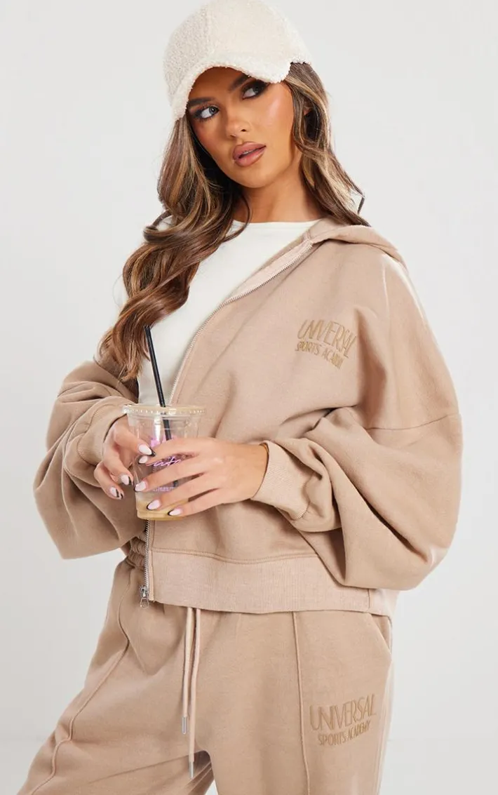 Get ready to earn some serious style point sin this light mocha premium washed tonal print zip up boxy hoodie. Brought to you in a light mocha washed material with a tonal print design and a zip up fastening, how can you go wrong. Team this boxy hoodie with the matching sweatpants, a white tee and sneakers for a neutral off-duty look that won’t go unnoticed.