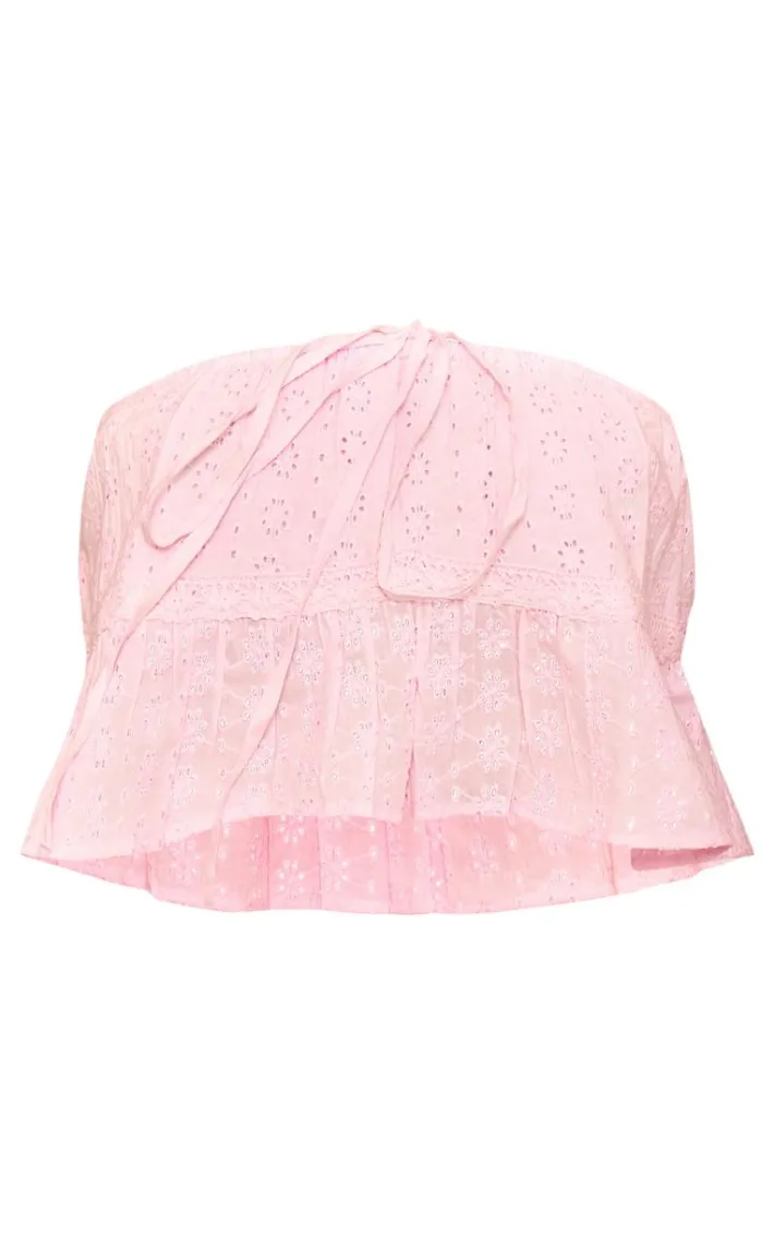Add some dreamy hues to your new season wardrobe with this light pink broderie crochet trim halter crop top, we’re seriously in love. This top features a light pink broderie material with a crochet trim and a cropped length, what more could you want? Pair with the matching shorts, platform sandals and hoop earrings for a flawless finish.