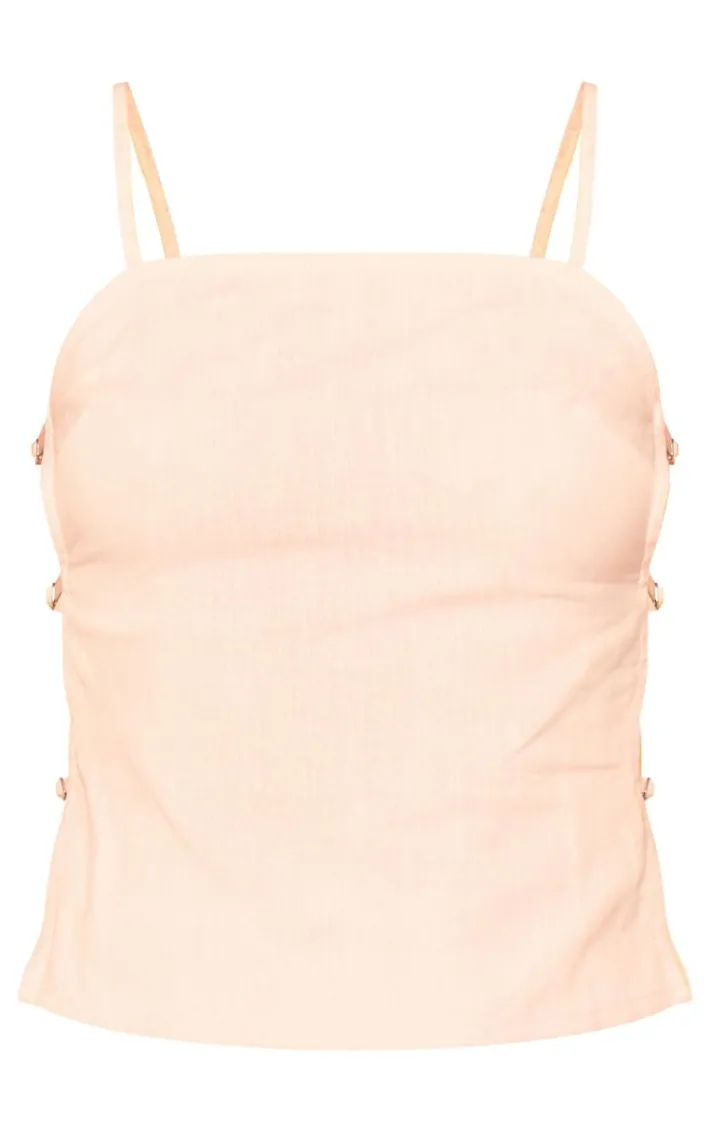 Switch up your new season style game with this light pink linen look velvet strap detail cami top, we just can’t get enough. This top features a light pink linen look material with velvet straps and a relaxed fit. Simply add the matching shorts, sandals and a raffia bag for a look everyone will be asking about.