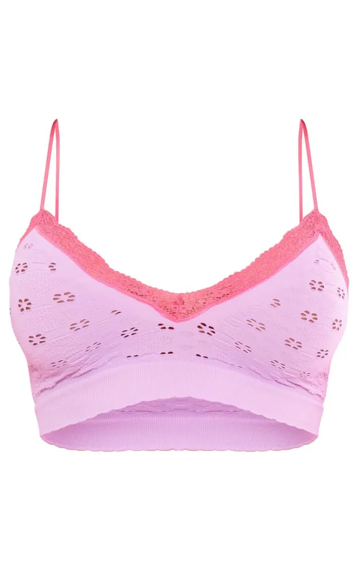 Add some dreamy hues into your lingerie collection with this must-have lilac contrast lace textured seamless bralette. This bralette is brought to you in a lilac hue with a contrasting lace detial and a seamless design, how could you resist? Wear this with a white thong under your outfit of the day for a flawless finish.