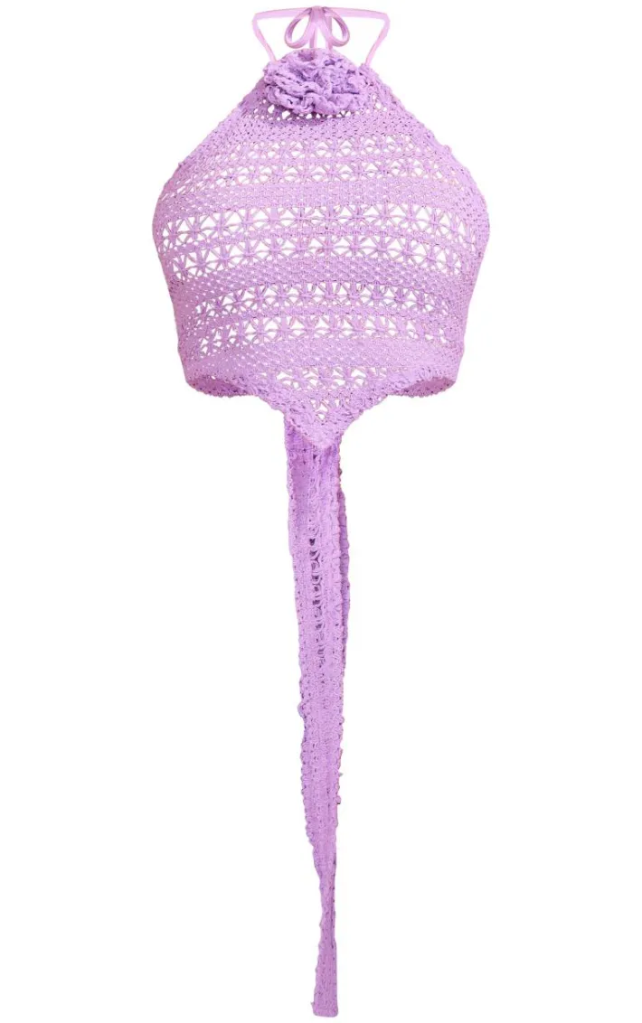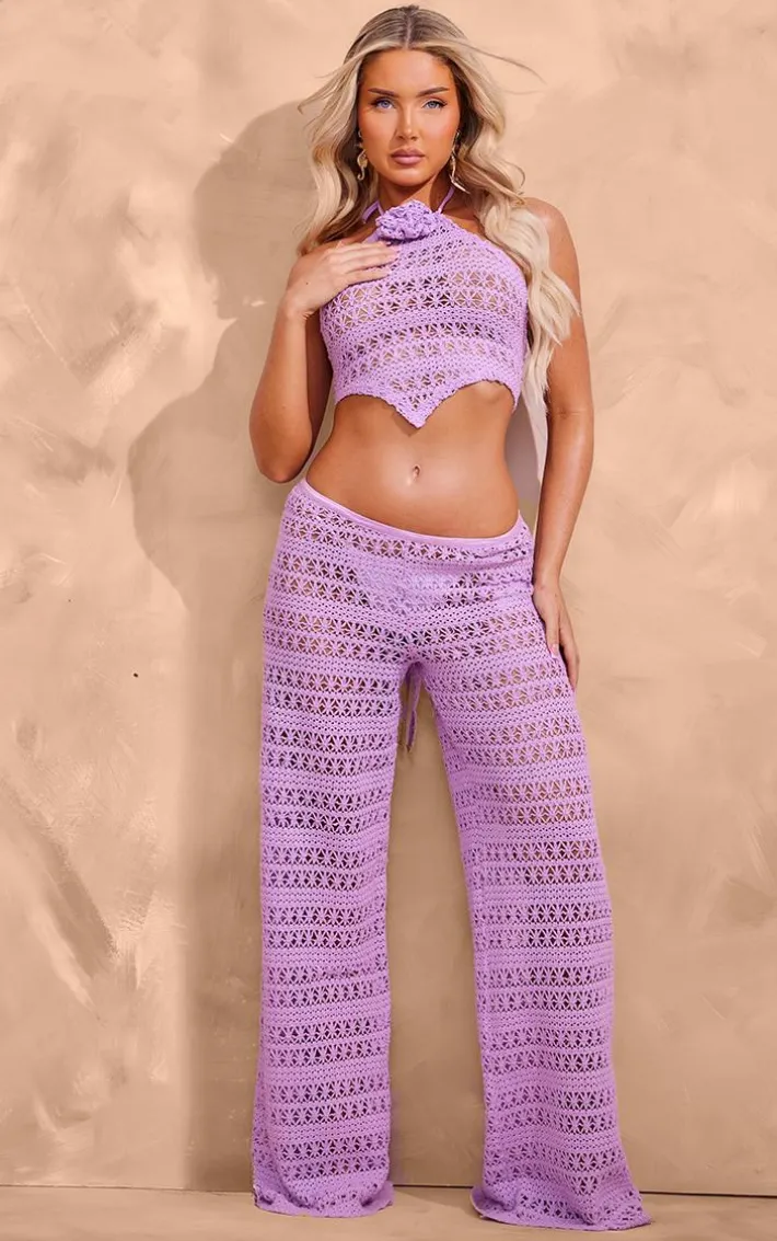 Inject some of this season’s must-have hue into your weekend wardrobe with this lilac crochet flower detail halterneck beach top which won’t let you go unmissed. Brought to you in a lilac crochet material with a flower detail, how could you resist? With its halterneck design, you’re sure to have all eyes on you. Pair with the matching pants and your fave accessories for a glam finish that won’t let you blend in.