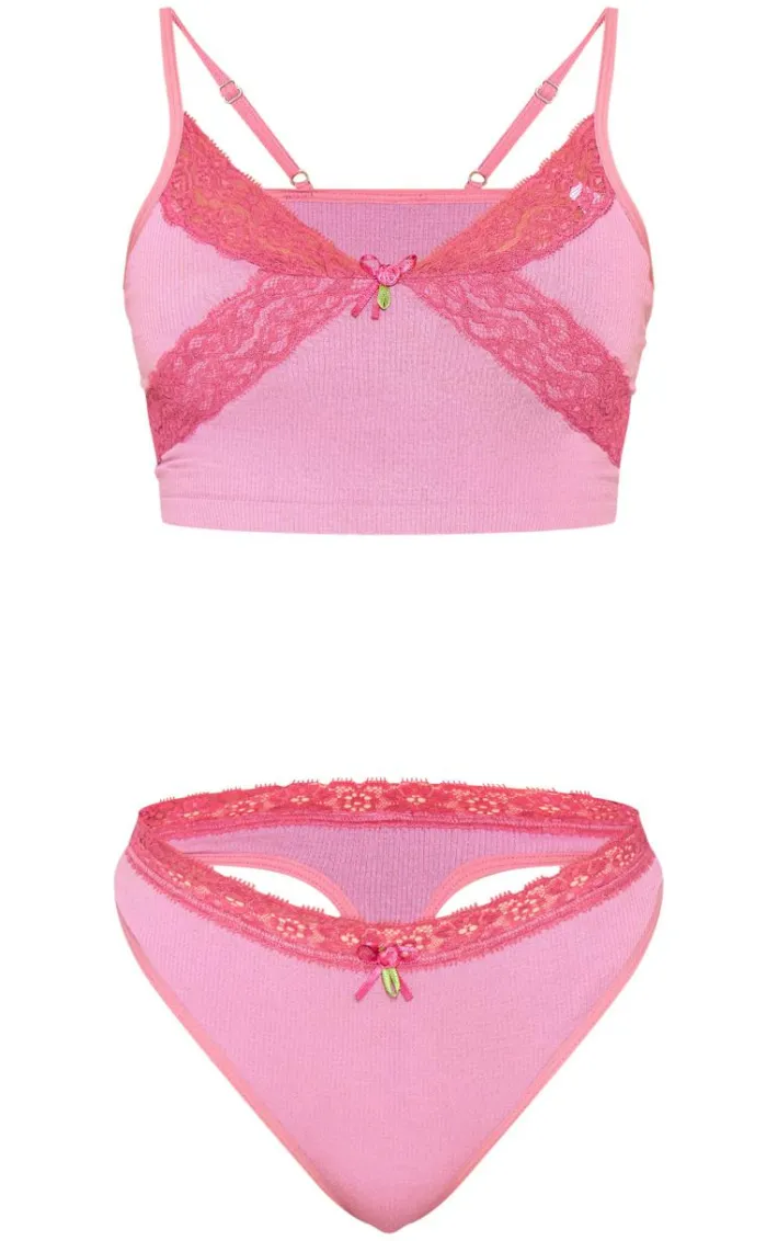 It’s official, we’re obsessed with this lilac lace trim bralette and thong lingerie set. Brought to you in a lilac hue material with a lace trim detail, this lingerie set is unreal. How can you resist? Team with your fave robe and gold accessories to turn heads for all the right reasons.
