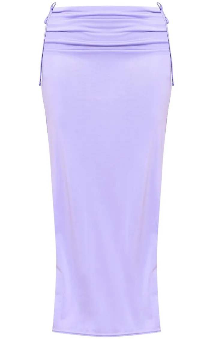 Go for all the effortlessly luxe vibes this weekend with this lilac matte touch ruched tie maxi skirt, we’re in love. This skirt features a lilac matte touch material with ruched detailing and a maxi length. Pair this ruched skirt with the matching top, clear heels and hoop earrings for an occasion-ready look.