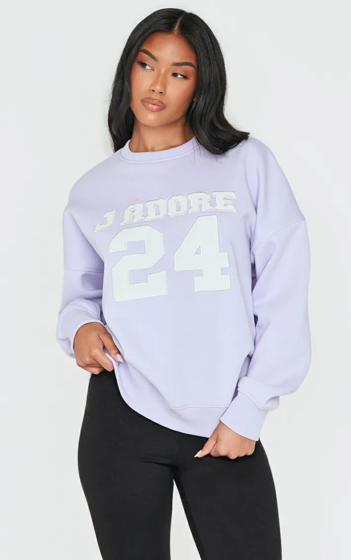 Add a pop of color to your cosy collection with this lilac oversized applique Sweatshirt. Brought to you in a must have lilac hue, with an oversized fit and a ‘J’adore 24’ applique design, what’s not to love? Style with a pair of black leggings and sneakers for a look we’re loving. It’s a yes from us.