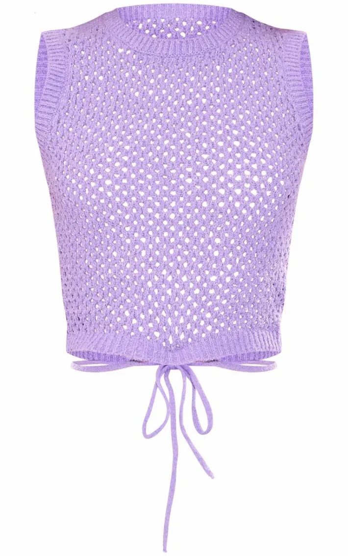 Keep it seriously chic with this lilac textured crochet tie detail racer neck top. Brought to you in a lilac textured material with a crochet design and a tie detail, giving you a flattering fit like no other. This unreal racer neck top is the ultimate must have in your collection, so what are you waiting for? Shop the look and team with a maxi skirt and your fave accessories to make a statement this season.