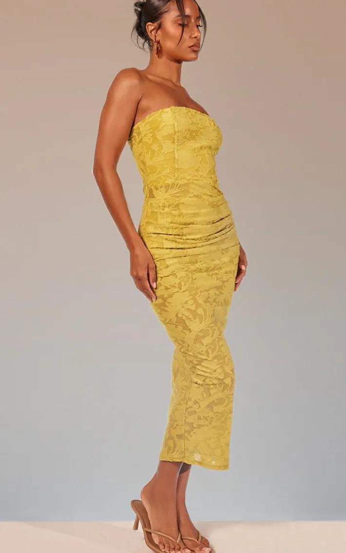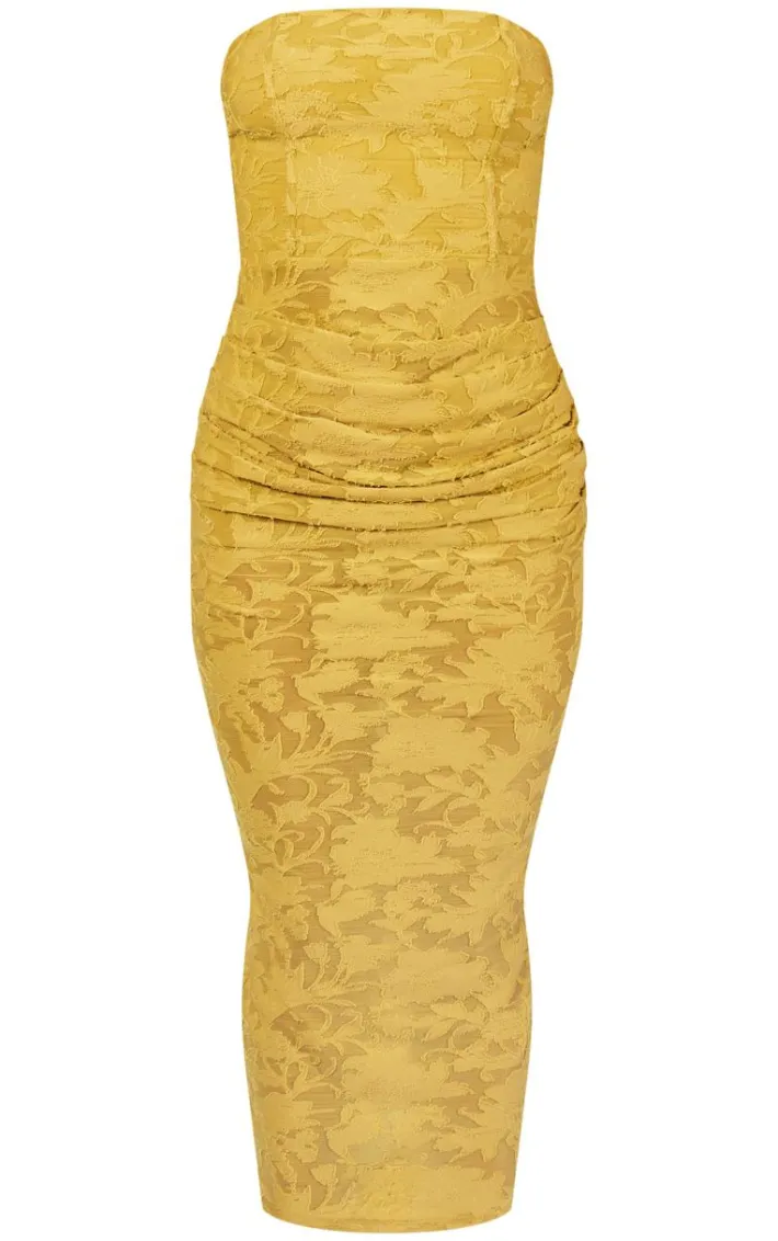 Add some statement hues into your collection with this lime green floral sheer burnout ruched bandeau midaxi dress. Brought to you in a lime green material with a floral sheer burnout design and a ruched bandeau detailing, we are obsessed. This midaxi dress is all you need to turn heads for all the right reasons. Team with your fave accessories and some slip on heels to finish off the look we are loving.