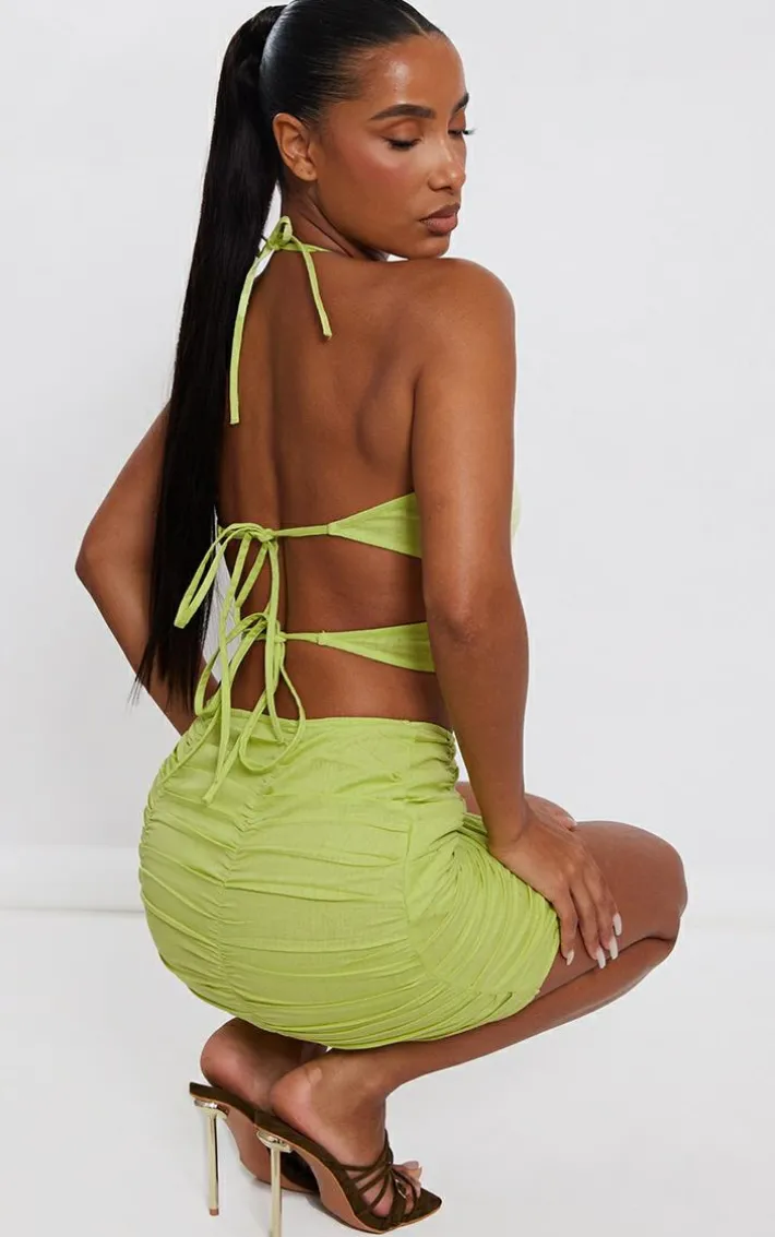 Add some bright hues into your new season wardrobe with this lime linen look extreme cut out ring detail bodycon dress, it is the ultimate statement piece for your weekend plans. This bodycon dress features a lime linen look material with a cut out design and a ring detail, we’re obsessed. Style this linen look dress with slip-on heels and your fave accessories for a flawless finish.