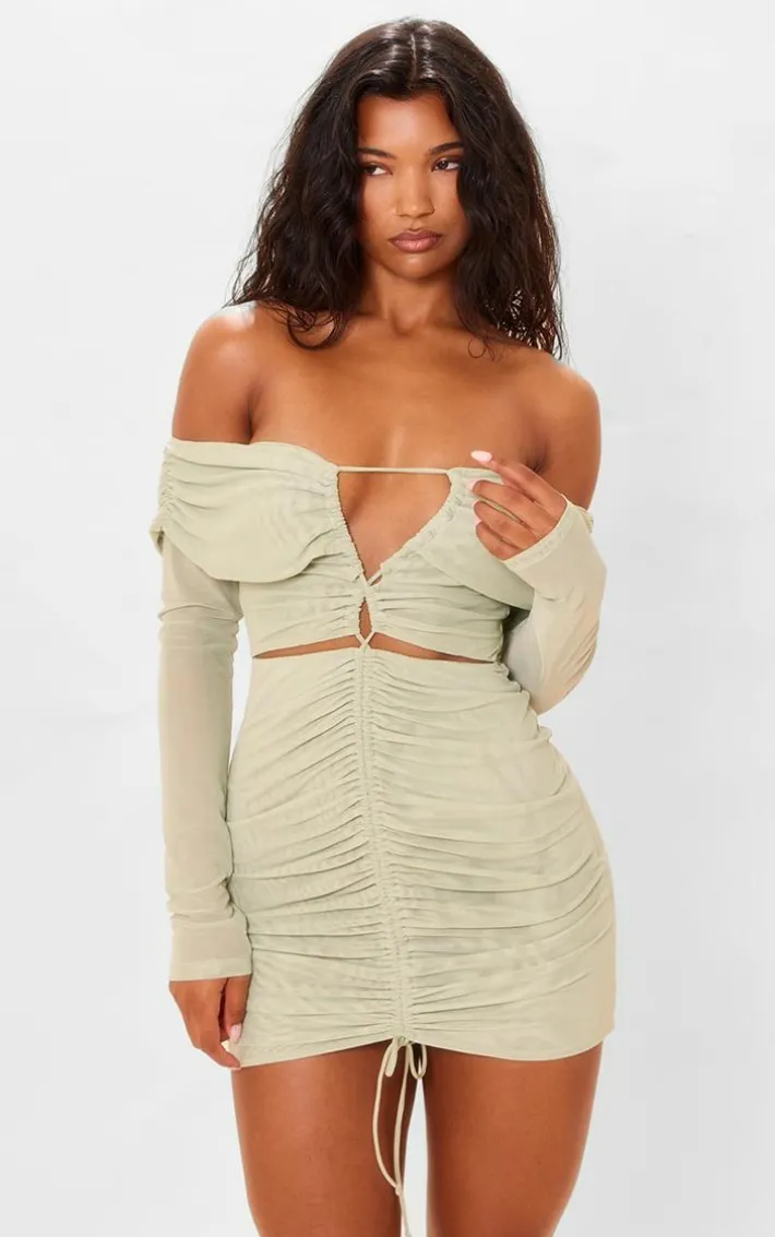 Keep your look bold and bright this season with this lime mesh ruched off bardot mini dress, it’s a definite yes from us. This dress features a lime mesh material with ruched detailing and a bardot style, you’re sure to be earning all the compliments. Pair this mesh dress with heels and your fave accessories to earn all the compliments.