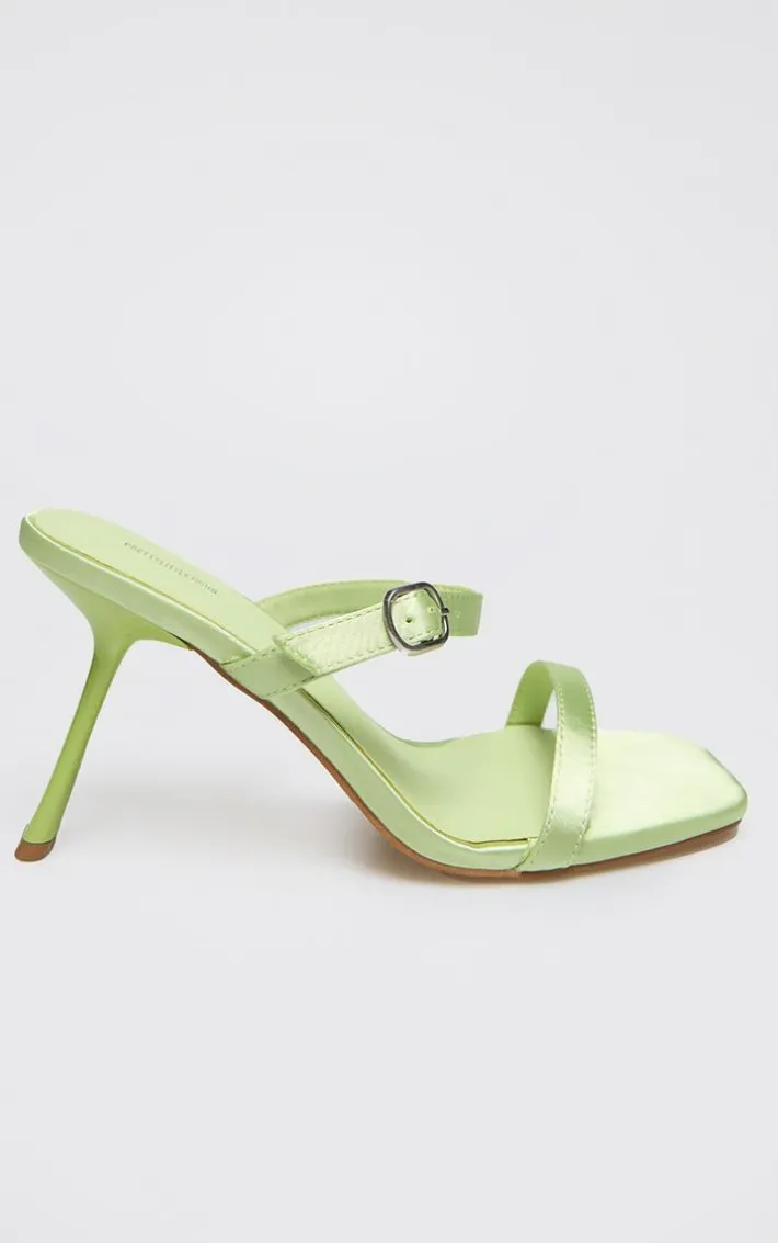 Bring on all the bold hues this season with these lime satin square toe strappy heeled mule sandals. Brought to you in a lime satin material with a square toe design and strappy detail, these heeled mule sandals are calling your name. Style with your fave outfit of the eve for a glam finish we’re obsessing over.