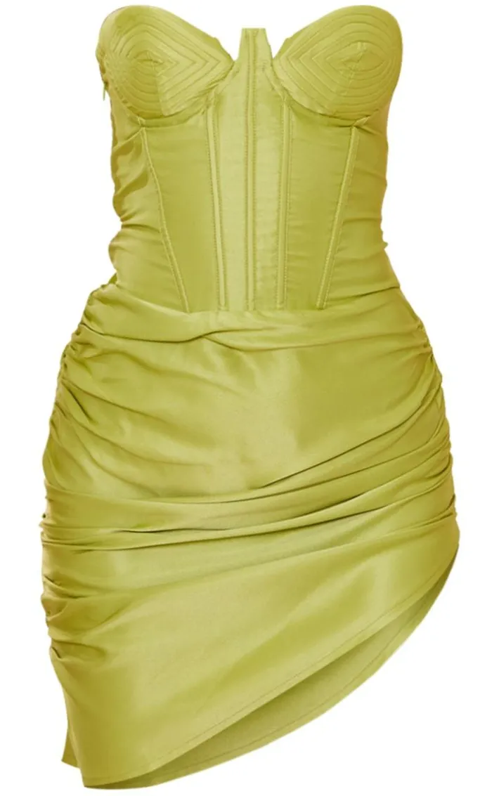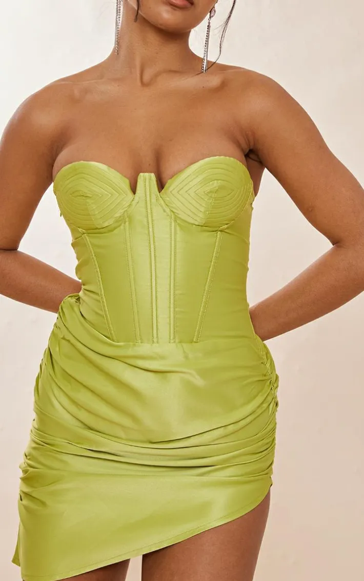 Make a statement this season with this lime satin underwired cup detail ruched bodycon dress. This dreamy dress is made from a lime hue for a statement look we are obsessing over. In a satin material, you are sure to channel all the luxe vibes this season. This dress has an underwired cup detail and a bodycon fit for a look that will have heads turning for all the right reasons. Style with some statement earrings and your fave heels for an effortlessly chic look that will earn you some real styling points.