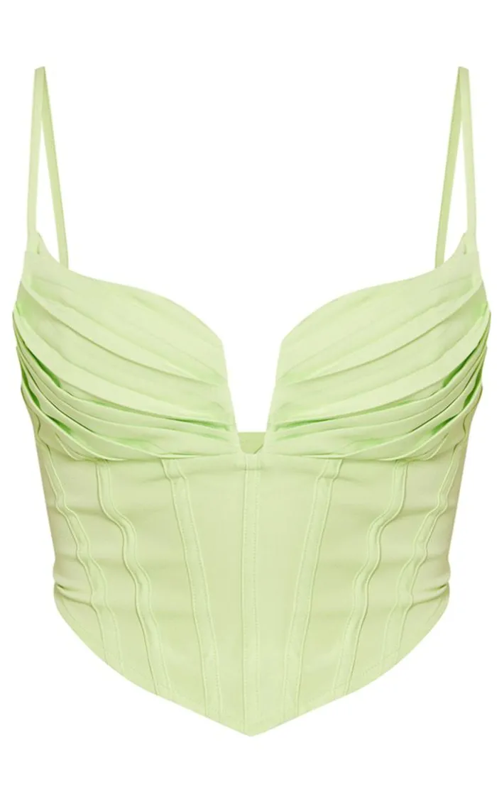 Your ‘what to wear’ dilemmas have finally been solved with this lime strappy pleated bust corset detail crop top. This top is perfect for those upcoming plans with the dolls. With a lime material and a strappy design, this crop top is sure to have you standing out in any room. This top has a pleated bust detail that will have you tapping into your confident side this season. Team with some wide leg pants and a pair of clear heels to elevate the look to new heights.