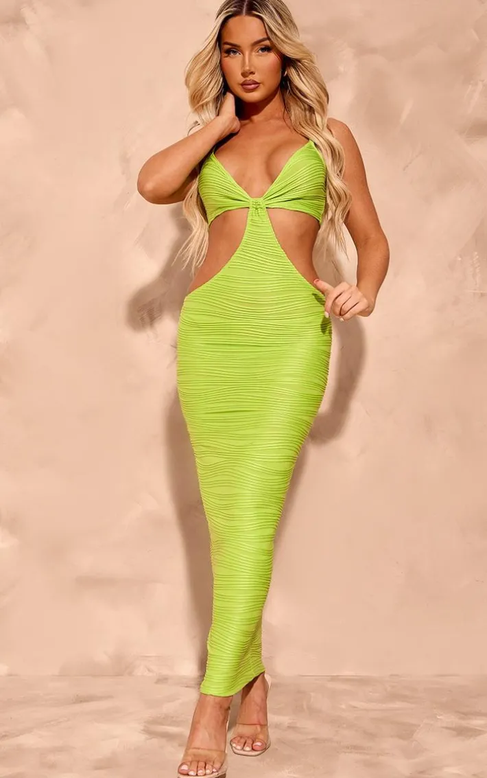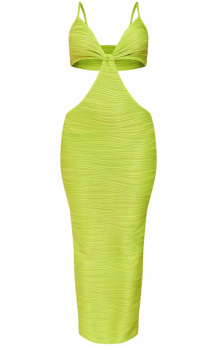 Get ready to make a serious style statement in this lime textured cut out knot detail strappy midaxi dress. Brought to you in a lime hue textured material with a cut out design, knot detailing and a figure-flattering midaxi length, how can you resist? Style this strappy dress with heels and gold accessories for a look they won’t be able to take their eyes off.