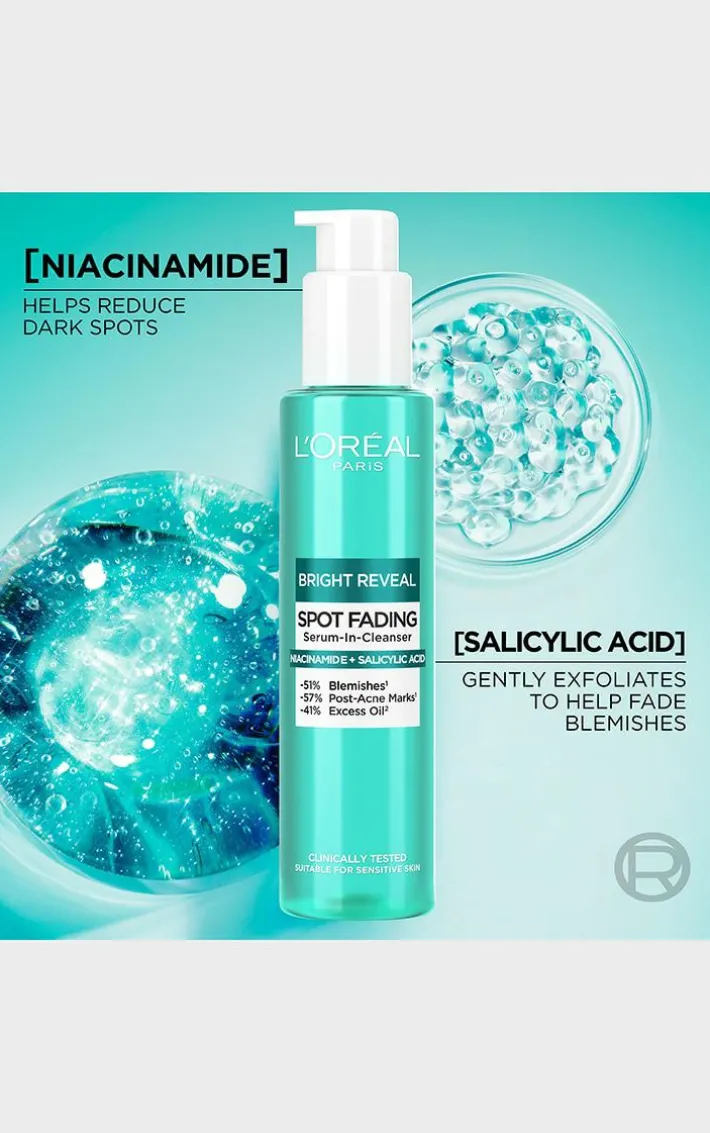 The efficacy of a serum in a lightweight gel to foam cleanser, powered by dermatologist-recommended actives, brightening Niacinamide and exfoliating Salicylic Acid. Clinically proven to fade dark spots and visibly correct hyperpigmentation, revealing a visibly clearer, brighter, and more even skin tone.