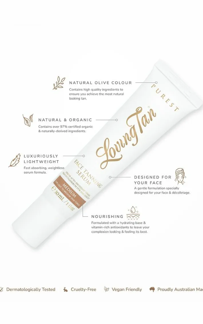 Created specifically for your face and décolletage, the Purest Face Tanning Serum is formulated with 97% certified organic and naturally derived ingredients to provide you with a flawless, natural-looking tan. Infused with Chamomile, Cocoa and Elderflower extracts, this luxuriously lightweight formula enhances your complexion while your tan develops. The natural color guide makes for the perfect application each time.