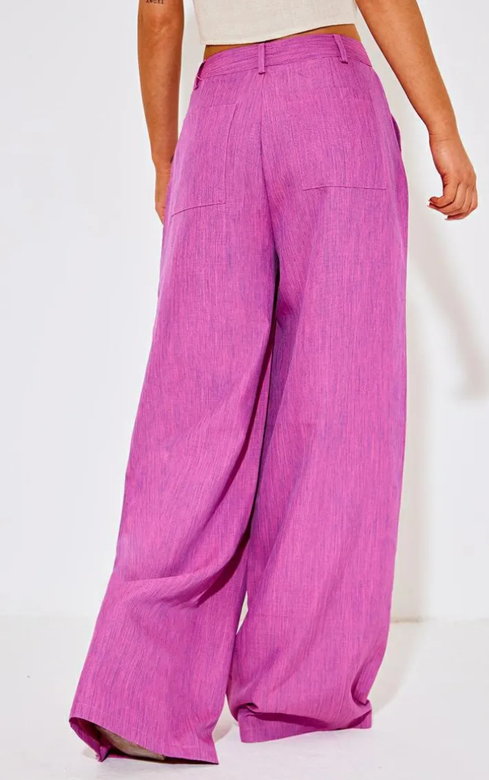 No one wants to blend into the crowd these days doll and these magenta woven linen feel tailored high waist wide leg pants are bound to steal all the attention. Brought to you in a magenta woven linen feel material with a tailored design, a high waist and a wide-leg fit, what’s not to love? These pants are everything you have been looking for and more doll, so don’t miss out. Style effortlessly with a dreamy crop top, clear heels and a mini bag for the ultimate glam vibe.