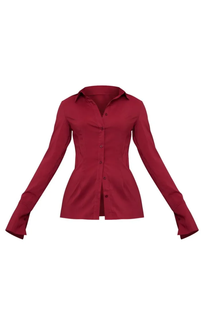 This maroon chiffon fitted shirt is an unreal addition to your new season wardrobe. Spice up your staples collection with this fierce maroon shade, paired with the chiffon material and fitted design, you really can’t go wrong. Style with some black hot pants, knee length boots and a red shoulder bag for a fool-proof finish.