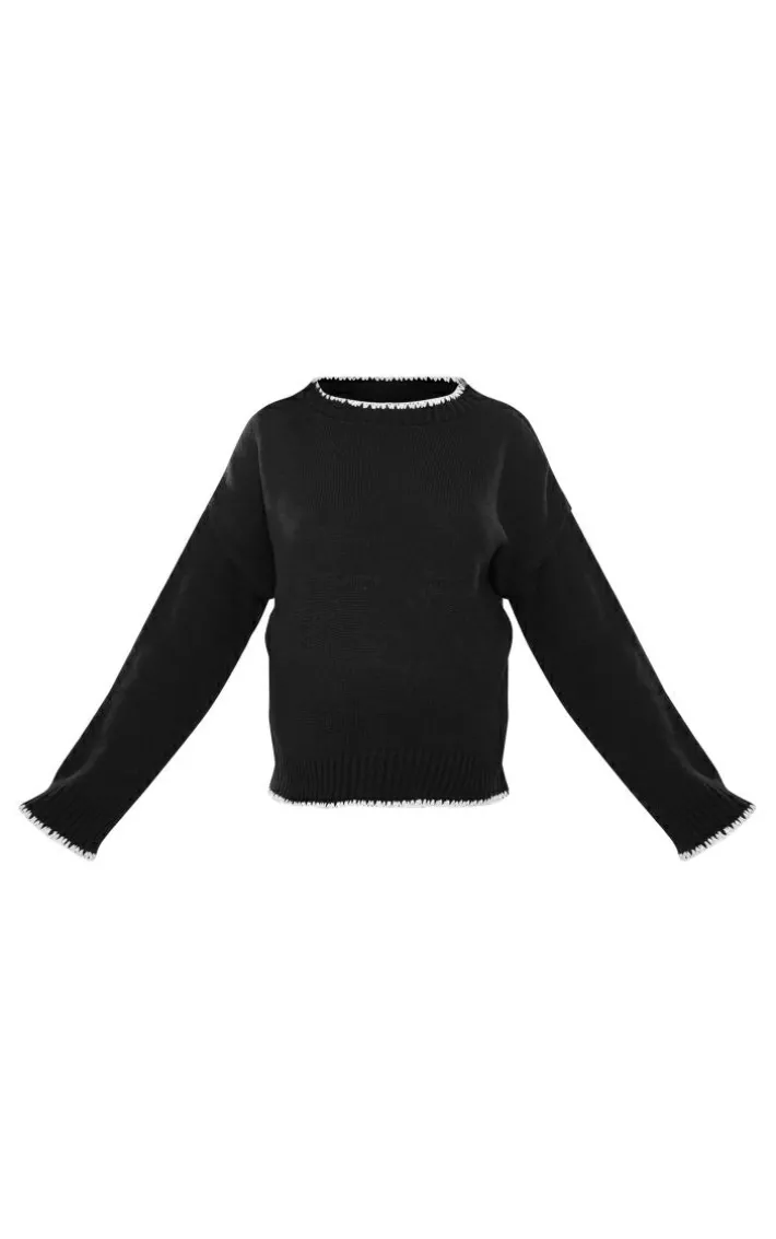 Step up your style game this season with this maternity black long sleeve contrast trim sweater. Brought to you in a black knit material with contrast trim detail and long sleeves, how could you not be in love? A must-have for your off-duty wardrobe , this maternity sweater will be your newest go-to. Team with the matching flares, chunky kicks and everyday accessories for a look that is sure to impress.