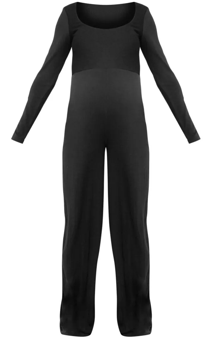 Make this figure-hugging jumpsuit your new wardrobe go-to. Featuring a black soft rib material with long sleeves and a wide leg fit, we’re obsessed. Keep it casual and just add kicks and a mini bag to complete the look.