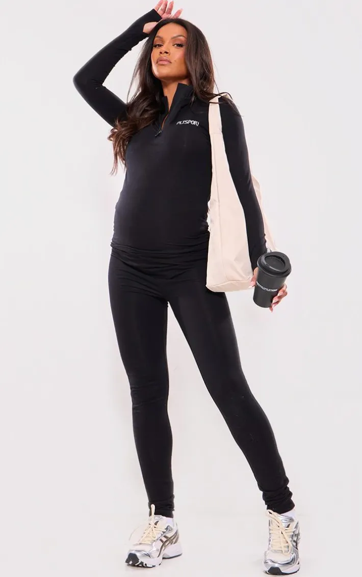 You need this maternity black sport half zip up top in your collection. Brought to you in a black sport material with a half zip up fastening, bringing all the edge to you outfit of the day. This maternity top is all you need to feel seriously chilled. Team with the matching leggings and a pair of your fave comfy sneakers for a look we are obsessing over.