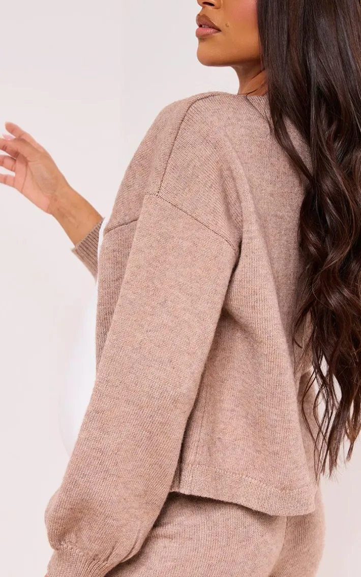 Bring all the comfy vibes to your new season wardrobe with this maternity brown knit cardigan. Made from a brown hue knit material with a relaxed fit, you really can’t go wrong. We are loving this knit cardigan styled with the matching pants, a plain top and sneakers for an effortless everyday look you will be reaching for again and again.