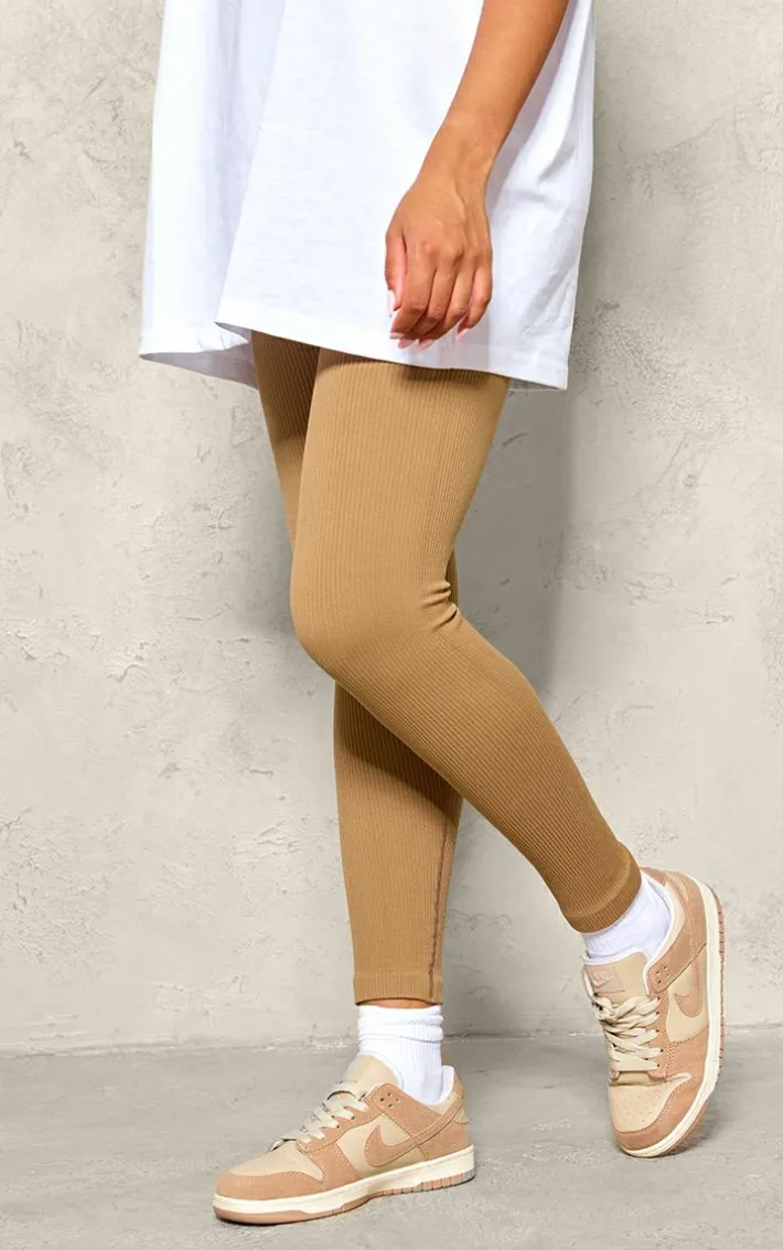 Amp up your off-duty wardrobe with these maternity brown snatched ribbed leggings. Brought to you in a brown hue snatched ribbed material, these leggings are at the top of our wish list. Style the bump in these with an over sized white tee and fresh kicks for a casual look we can’t get enough of.